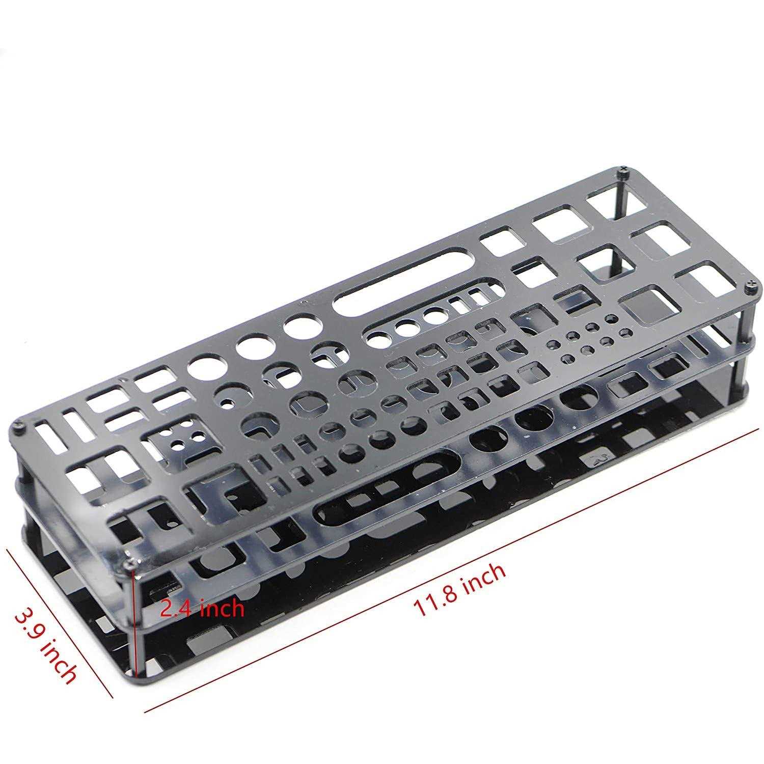 1. Made of PS material and PP material, resistant to stripping breaking and durable. 2. Three-layer panel design, has 63 slots are suitable for a variety of tools. 3. Access your tools Quick and Easy. Stop wasting time digging through your dark drawers to find the tool you need. Our racks fit seamlessly in to your drawer and keeps your pliers organized and easy to find. 4. Three-layer panel design with 8 screws only need to tighten the screws in the four corners to complete the installation. 5. Widely Applicable, differnt shape slot for Screwdriver, Wire Cutter, Pliers, Scissors and etc. Material: PS, PP plastic br/ Hole Specification: 6 x 200*200, 4 x 150*150, 12 x 100*100, 2 x 550*150, 6 x 100*5, 4 x 250*250, 4 x 150*100, 2 x 100*5, 8 x 5 Diameter, 3 x 150 Diameter, 6 x 10 Diameter br/ Item size: 300 x 100 x 60mm /11.8*3.9*2.36inch br/ Weight: 235g/0.52lb br/ Package Includes: br/ 2 x Holes Fixed Plate br/ 1 x Bottom Board br/ 4 x Plastic Fixed Column br/ 4 x Screw