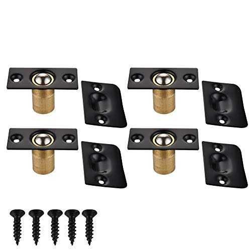 JQK Closet Door Ball Catch Hardware, Stainless Steel Catch Adjustable with Strike Plate, Black Finish 4 Pack, HBC100-BK-P4