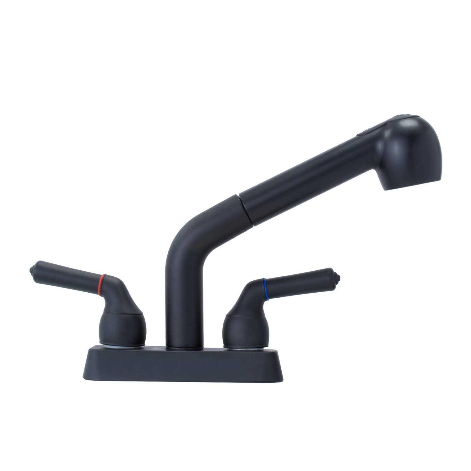 JS Jackson Supplies Dual Handle Pull Out Faucet, Black Finish, 4 inch Center Set, Universal Utility Sink or Laundry Tub ABS Plas