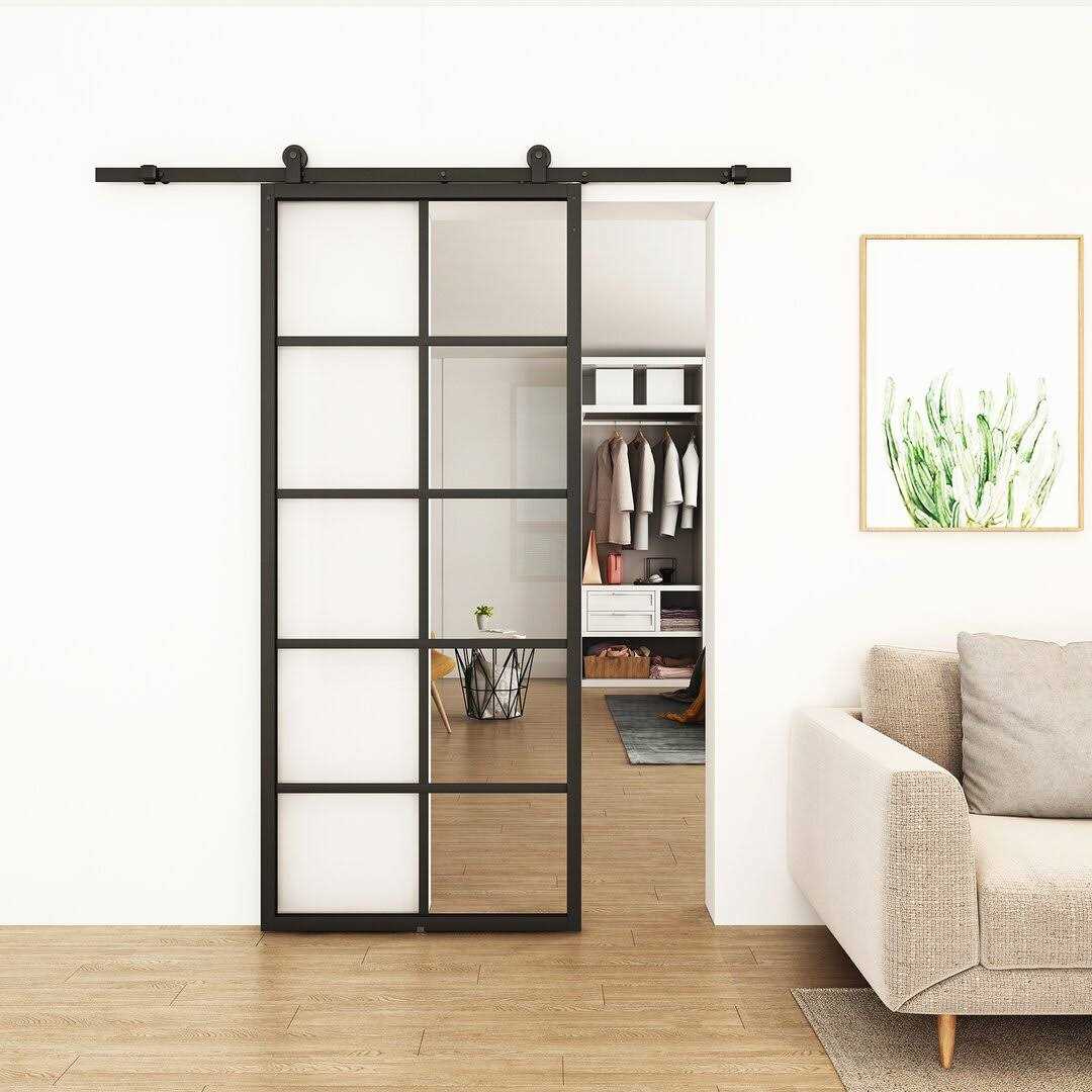 JUBEST 36in x 84in DIY Clear Tempered Glass Sliding Barn Door Without Track Kit