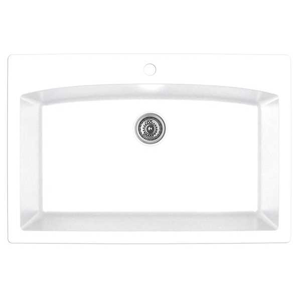Karran QT-712-WH Drop-in Quartz Composite 33” X 22” 1-Hole Single Bowl Kitchen Sink Finish: White