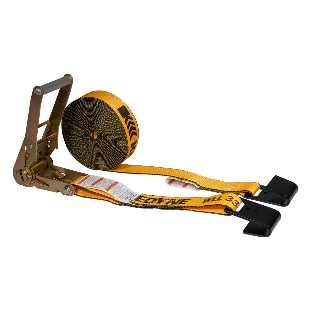 2″ Ratchet Strap (Branded) with Wide Handle and Webbing Our Ratchet straps are designed to handle most types of flatbed tie-down requirements. All ratchet straps are tagged with their working load limit to meet DOT regulations and WSTDA recommended standards. Strap Length: 30′ MFP# 803 End Hardware: Flat Hook Working Load Limit: 3,335 lbs Capacity: 10,000 Lbs Fixed end Webbing on the Ratchet is 14″ in length