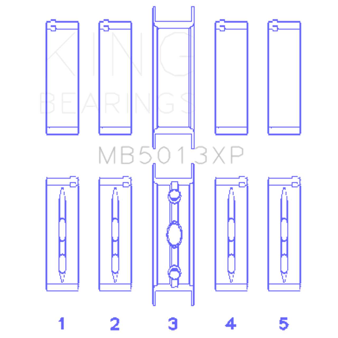 King Chevy LS1 LS6 LS3 Size STD Performance Main Bearing Set When you need the best you go to a specialist and for the best bearings you see King Engine Bearings. King focuses on one product bearings and nothing else. Their innovative race-only Xtreme Performance tri-lecular main bearings are proven track-tough to handle the ground-shaking power of your race engine. Built with enhanced tri-metal these XP-Series main bearings layer copper lead construction with a nickel plate barrier and a lead tin copper babbit overlay over a steel backing in an adhesion process that provides superior stability and durability. King s advanced control measures hit a bull s-eye maintaining wall thickness tolerances far tighter than their competitors an amazing – .0001 in. These XP-Series main bearings are narrowed for large radii crankshafts and feature enlarged chamfered oil holes with full 3 4 or 1 2 grooving for improved oiling. How many reasons do you need to use a specialist King XP-Series main bearings deliver consistent and reliable performance with a high-load capacity and the prognosis from the specialists is a long and happy life for your engine.