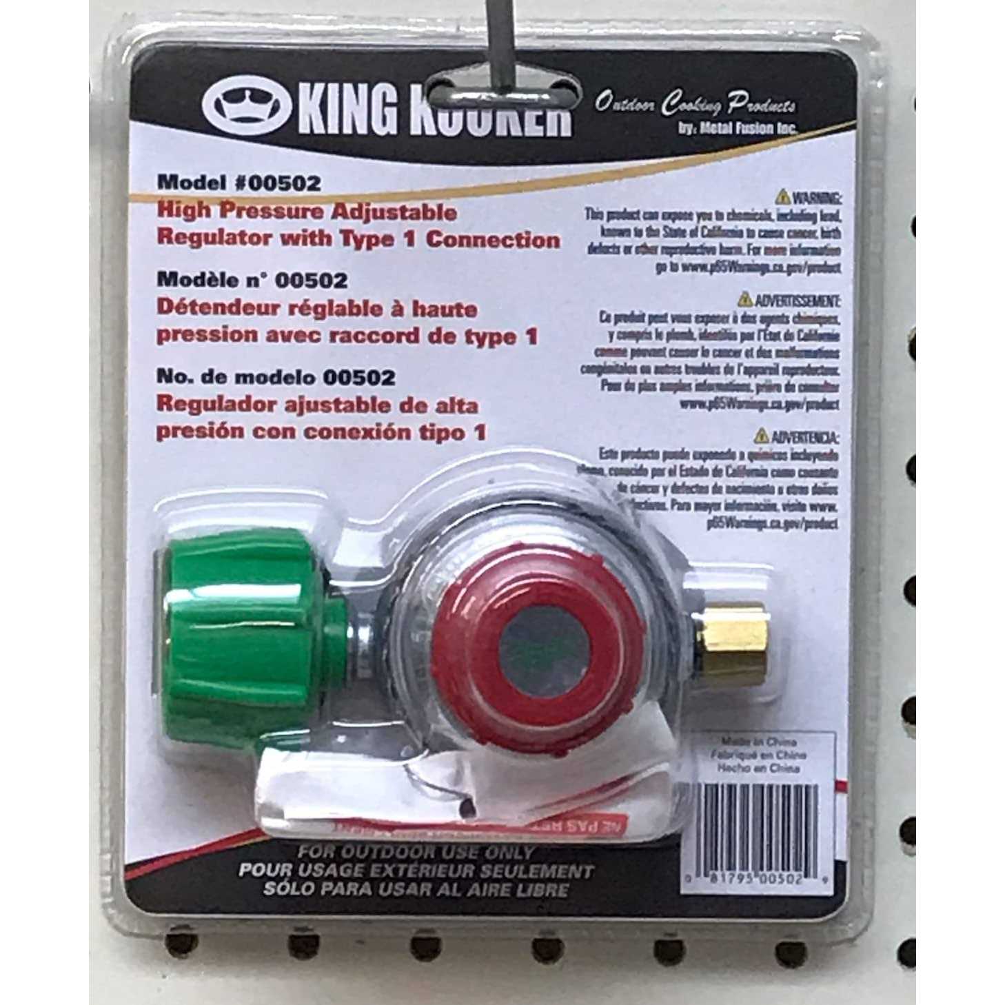 King Kooker High Pressure Adjustable Regulator with Type 1 Connection