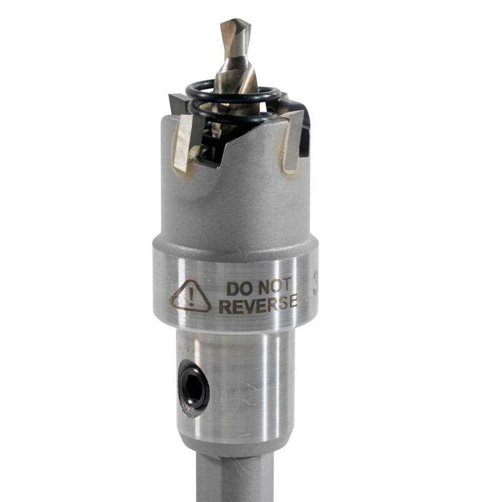 This carbide hole cutter cuts quick, precise holes in a variety of materials. Integrated flange prevents the operator from drilling beyond the sheet metal. Split point pilot drill bit prevents bit walking.