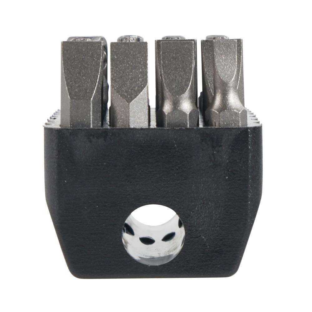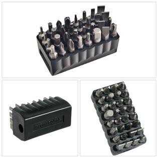- Block slides over most screwdriver shafts for easy bit access and storage