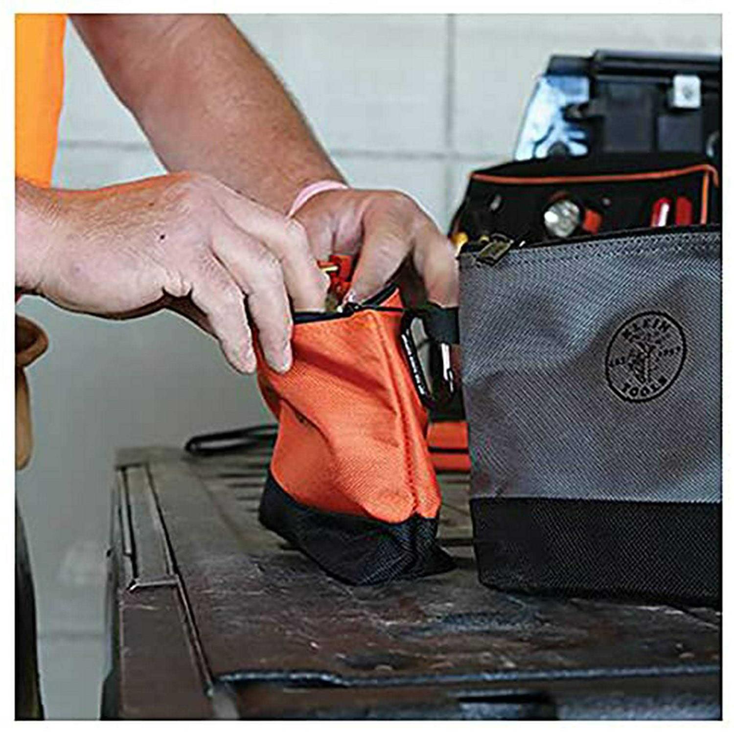 Klein Tools’ new Stand-Up Zipper Bags will keep your pieces and parts organized. The body of this tough pair is made of coated 1680d ballistic material while the bottoms are reinforced with 2520d ballistic material. The gusseting on these bags keeps them standing up making it easy to find your hex keys small levels drill bits and pieces.