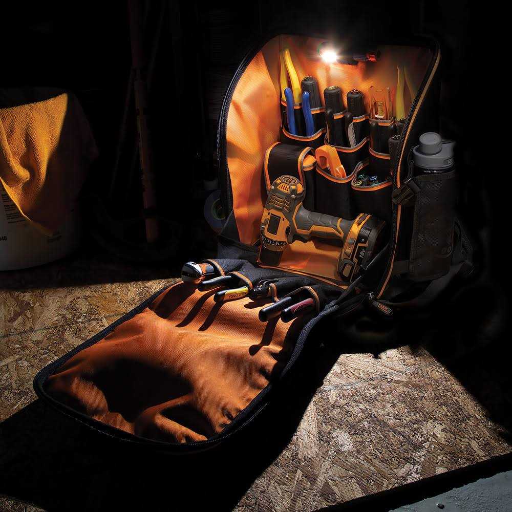 • Backpack with 21 pockets and large interior for maximum tool storage