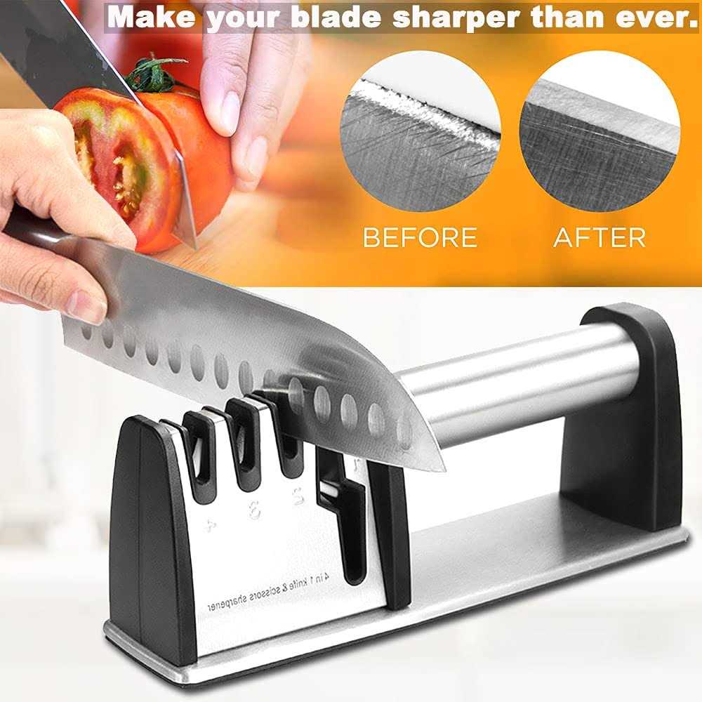 Knife Sharpeners Best 4 in 1 Manual Kitchen Knives Scissor Sharpener