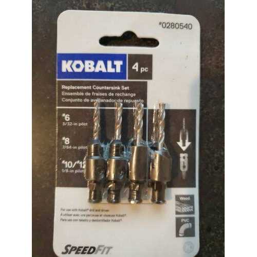 Set includes: #6 (3/32in pilot), #8 (7/64in pilot), #10 (1/8in pilot) and #12 (1/8in pilot) replacement inserts for drill and drive. For use with compact drill and driver. Replacement countersinks. Most popular sizes.