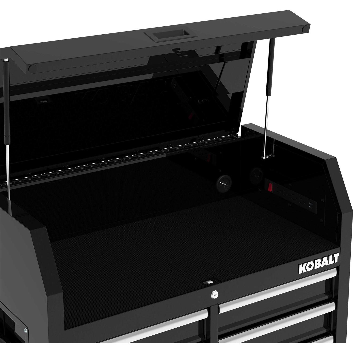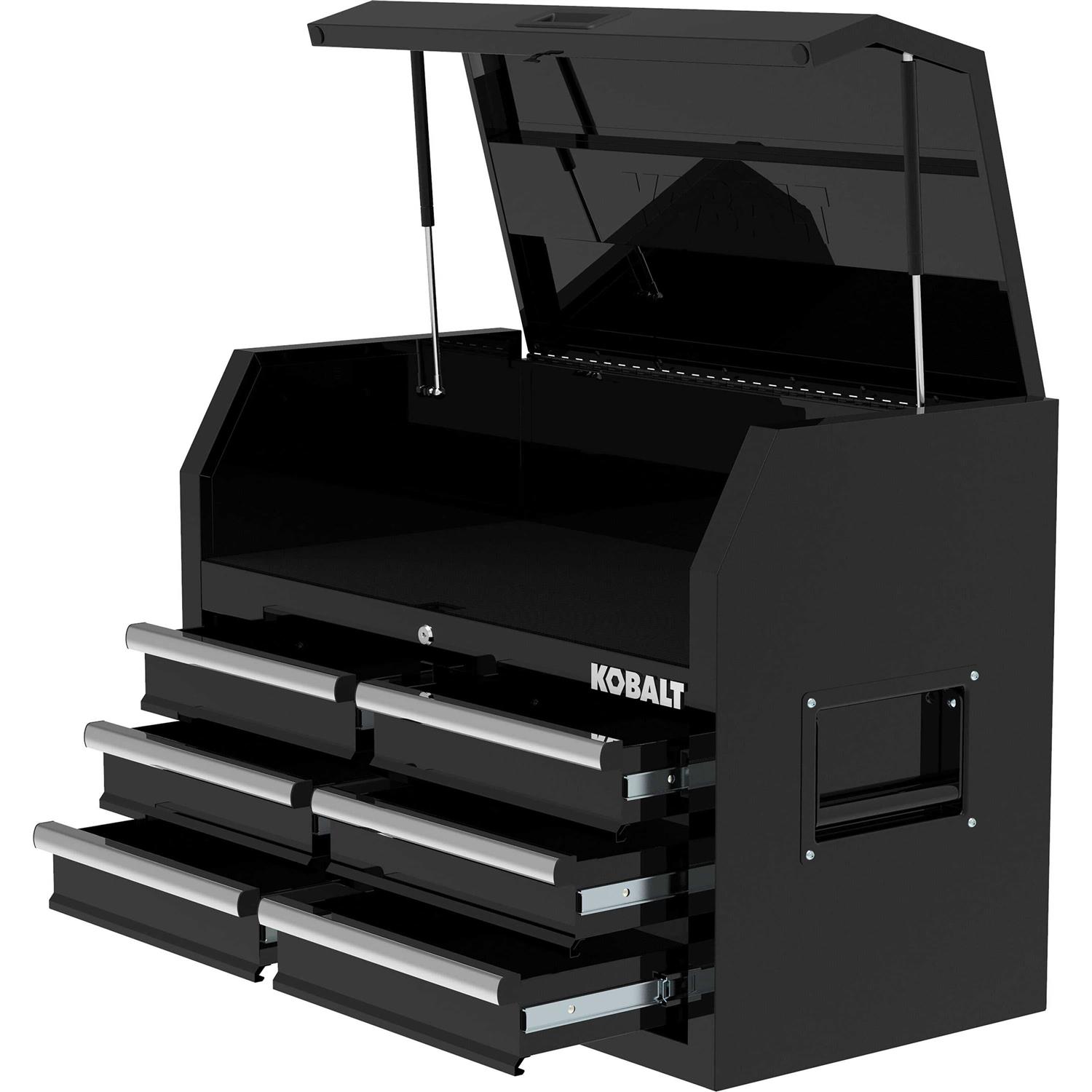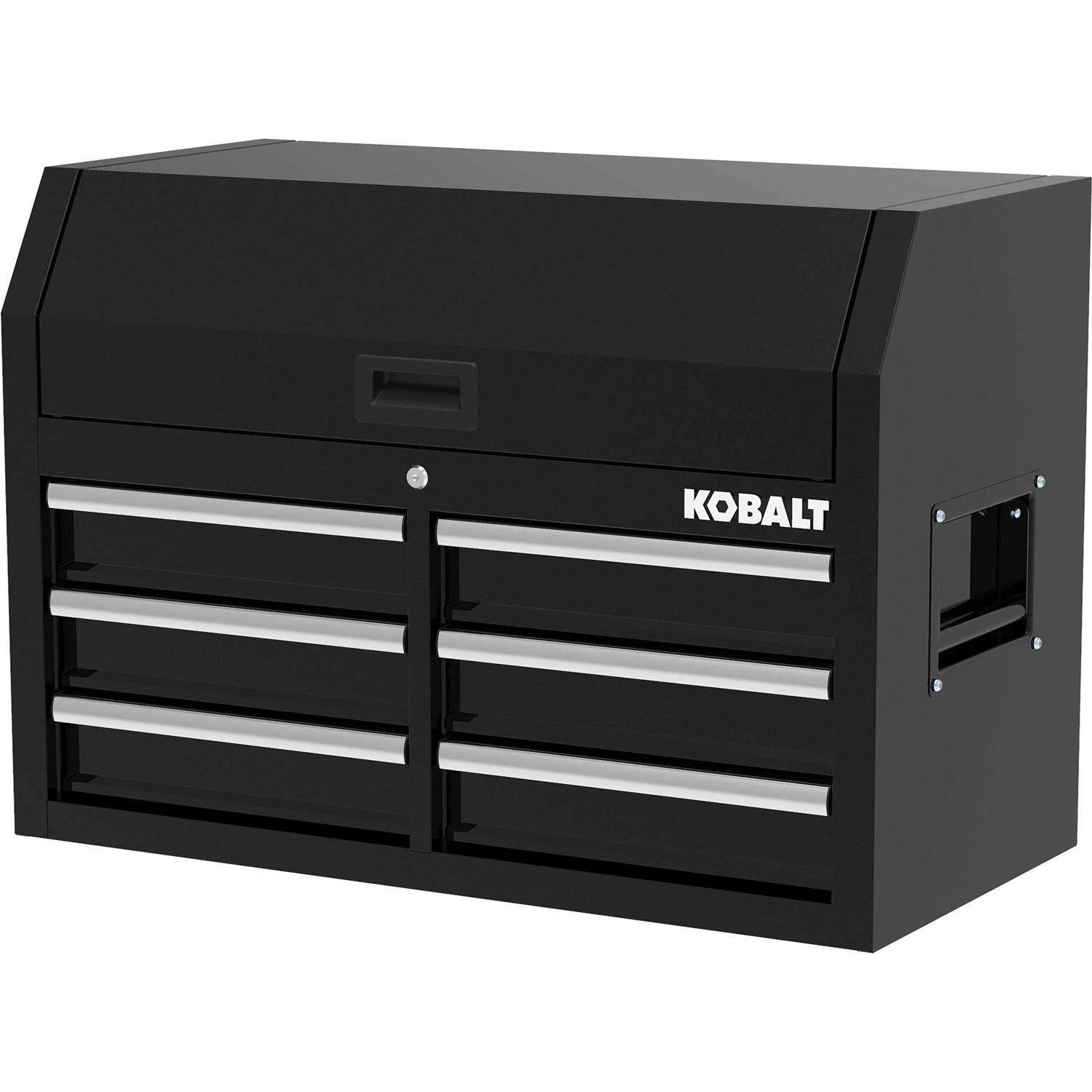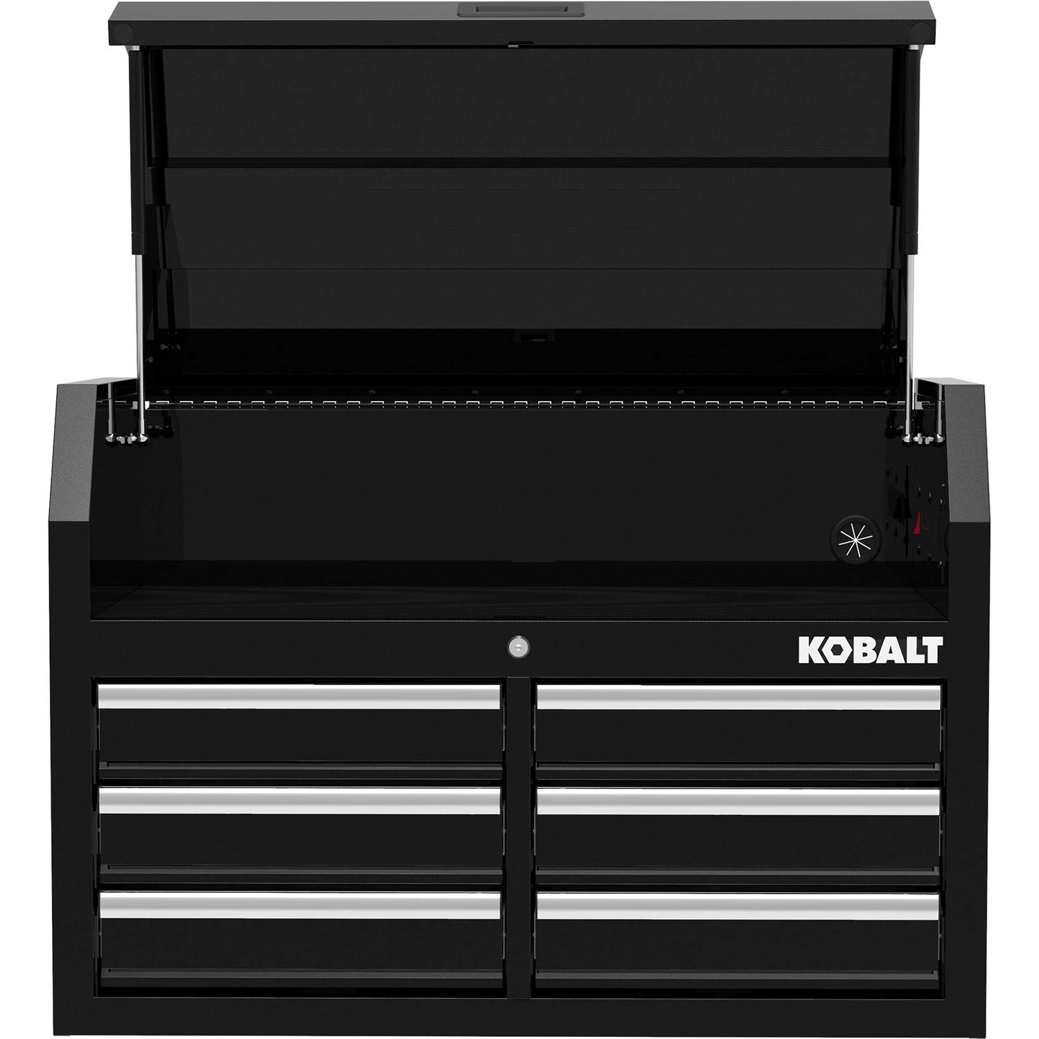 The Kobalt 36-In 6-Drawer Black Chest is great for storing and organizing all your tools and hardware. The unit is made from high grade all welded steel construction with a tough, rust-resistant powder coat finish. 6 Drawers are all soft-close full-extension and glide effortlessly on ball-bearing slides that can support up to 100 lbs. you can charge your electronics and power tools even when the chest is locked via the integrated power strip with 4-outlets and 2-USB ports. The chest has lock system for added security. Pair this chest with the Kobalt 36-In 5-Drawer Black Cabinet (item: 5071911, sold separately) to create the ultimate tool storage solution.