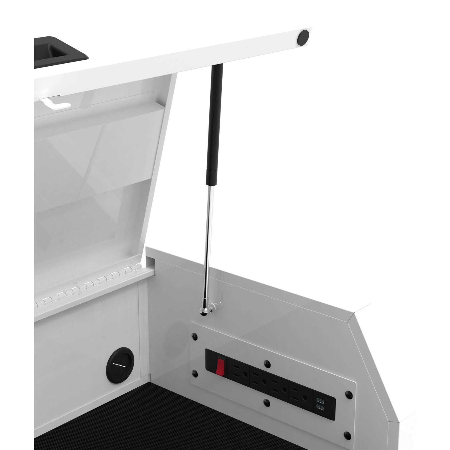 • Integrated power strip in top till with 4-outlets and 2-USB ports for charging electronics and power tools