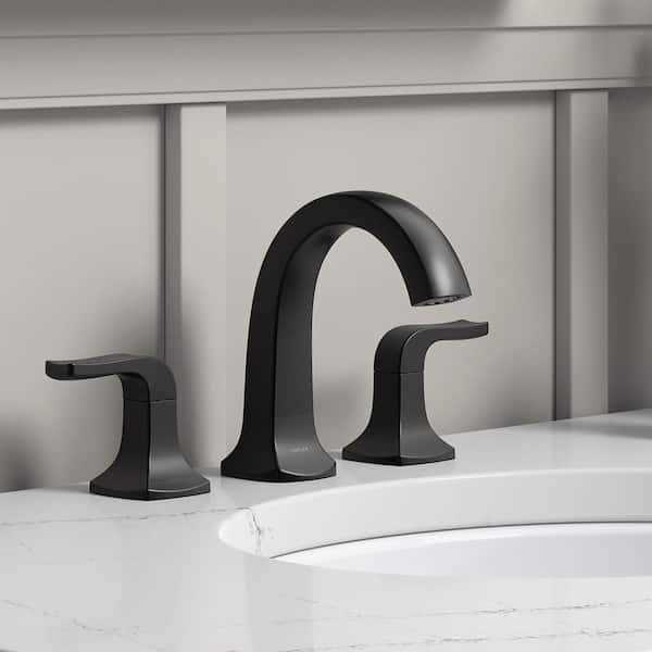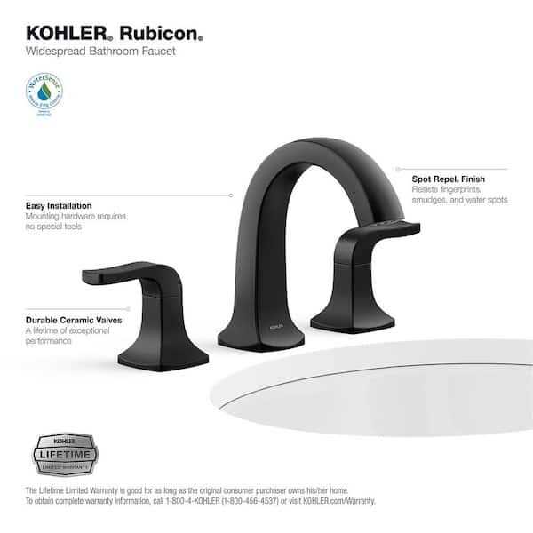 Kohler Rubicon 8 in. Widespread Double Handle High Arc Bathroom Faucet in Matte Black
