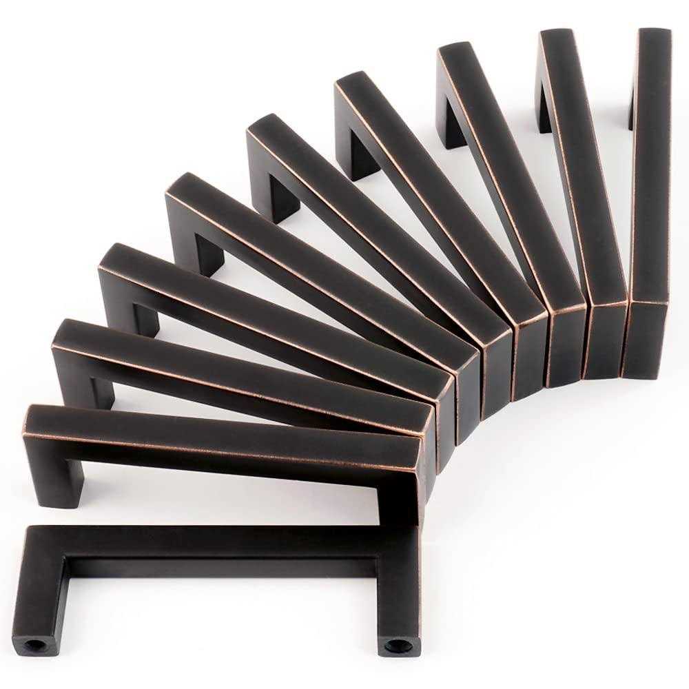 KOOFIZO Solid Square Bar Cabinet Handle – Oil Rubbed Bronze Furniture Pull, 3 Inch/76mm Screwhole Distance, 10-Pack for Kitchen Cupboard Door, Bedroom