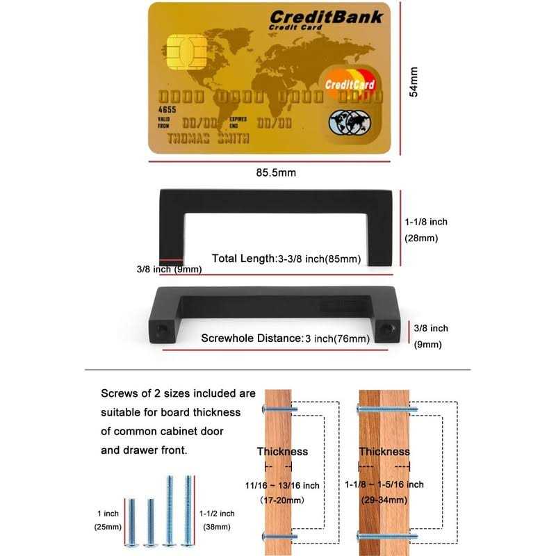 • Free screws of 25mm & 38mm included are suitable for board thickness of common cabinet door and drawer front.
