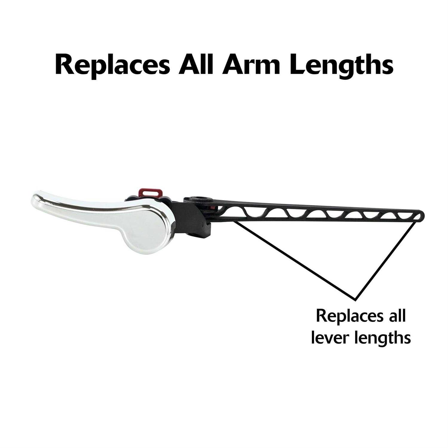 Korky chrome flush handle includes chrome handle, tank lever arm, and set of installation hardware. Easily adjusts to fit front, angle, and left side toilet tank positions. The lever arm is optimized for use with both 2in and 3in toilet flappers as well as canister-style flush valves and adjustable to eliminate the need to bend for fitment. The chrome finish is a great way to upgrade any toilet and compliment the bathroom’s decor.nnProduct FeaturesnnKorky chrome flush handle includes chrome handle, tank lever arm, and set of installation hardware. Easily adjusts to fit front, angle, and left side toilet tank positions. The lever arm is optimized for use with both 2in and 3in toilet flappers as well as canister-style flush valves and adjustable to eliminate the need to bend for fitment. The chrome finish is a great way to upgrade any toilet and compliment the bathroom’s decor.