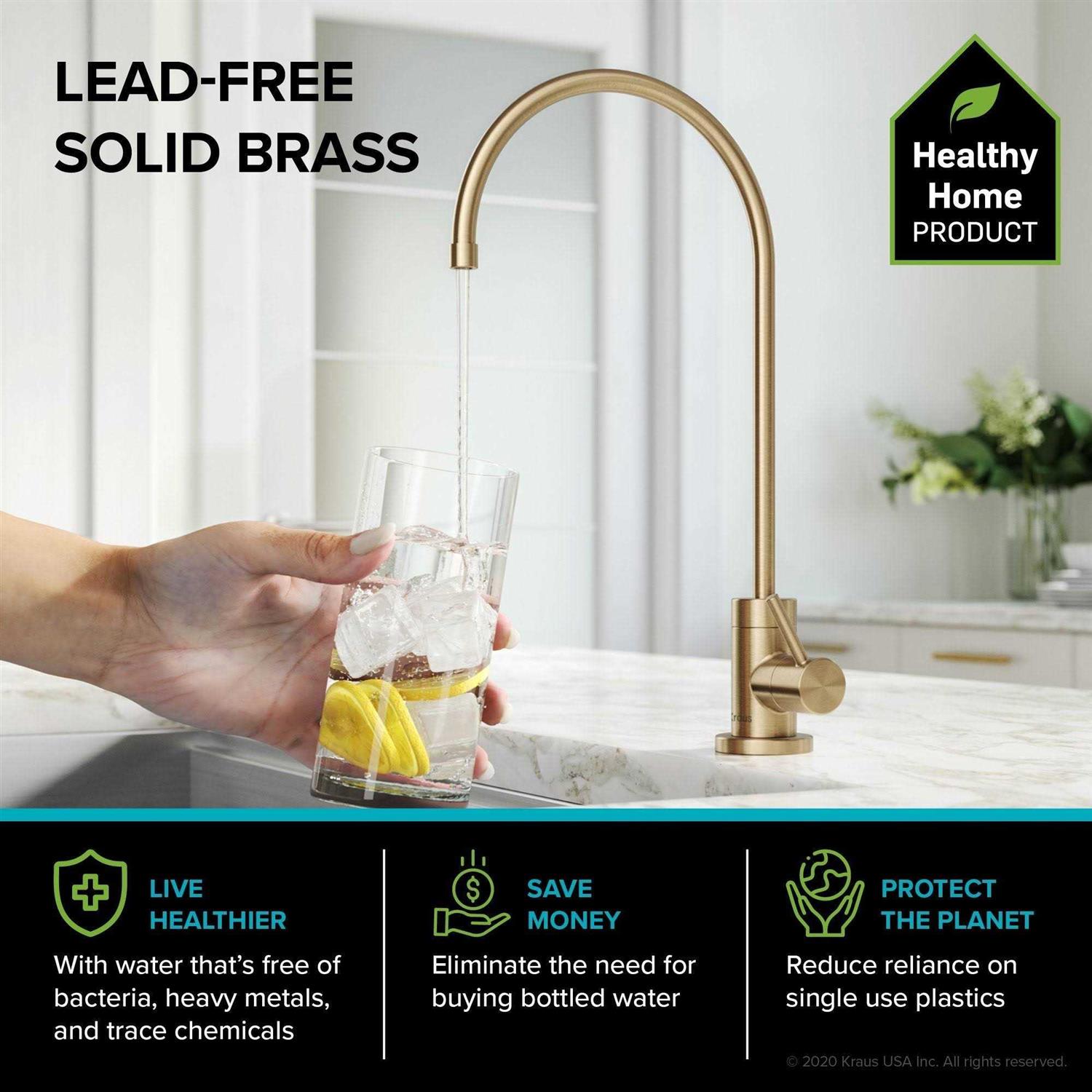Made with lead-free solid brass, the versatile semi-pro faucet has 2-function pull-down sprayer pairs and a filter faucet that saves you money by eliminating the need for bottled water. The commercial pull-down faucet features patented Reach technology for maximum maneuverability. Designed with a heavy-duty open coil spout and a compact 18?? height that fits under most kitchen cabinets, this faucet adds a striking industrial look to any d谷cor. The rubber nozzles are exceptionally easy to clean and prevent limescale and mineral build-up so that the water always flows freely. Made with 100% lead-free solid brass, the drinking water faucet provides filtered water on demand by connecting to a range of under-counter purification systems that clean out bacteria, heavy metals, and trace chemicals (filtration system sold separately). Upgrade your kitchen sink today with this Bolden faucet combo and make a positive change that will pay liquid dividends for generations to come.