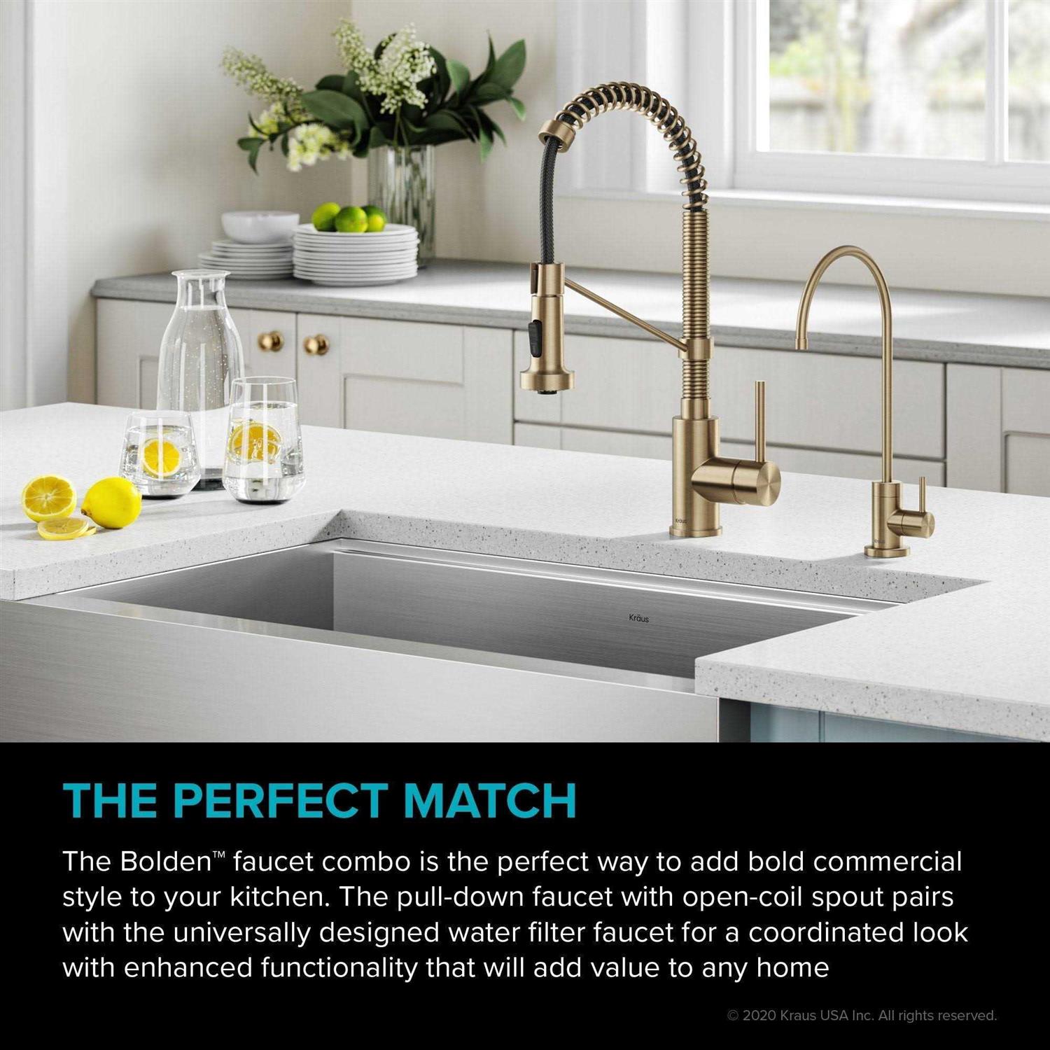 Kraus KPF-1610-FF-100BG Bolden Commercial Style Pull-Down Kitchen Faucet & Purita Water Filter Faucet Combo Brushed Gold