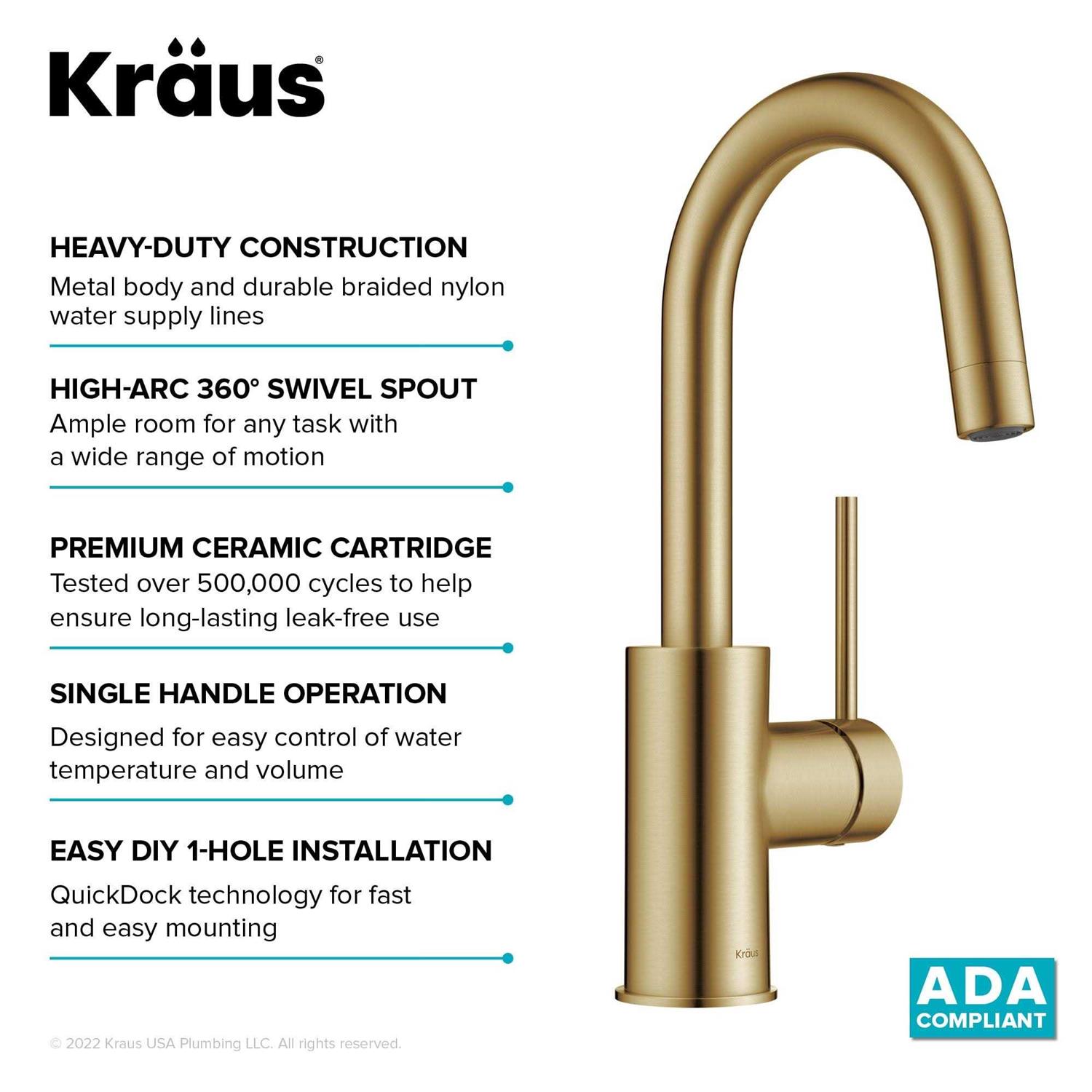 Kraus KPF-2600BB Oletto Single Handle Kitchen Bar Faucet with in Brushed Brass