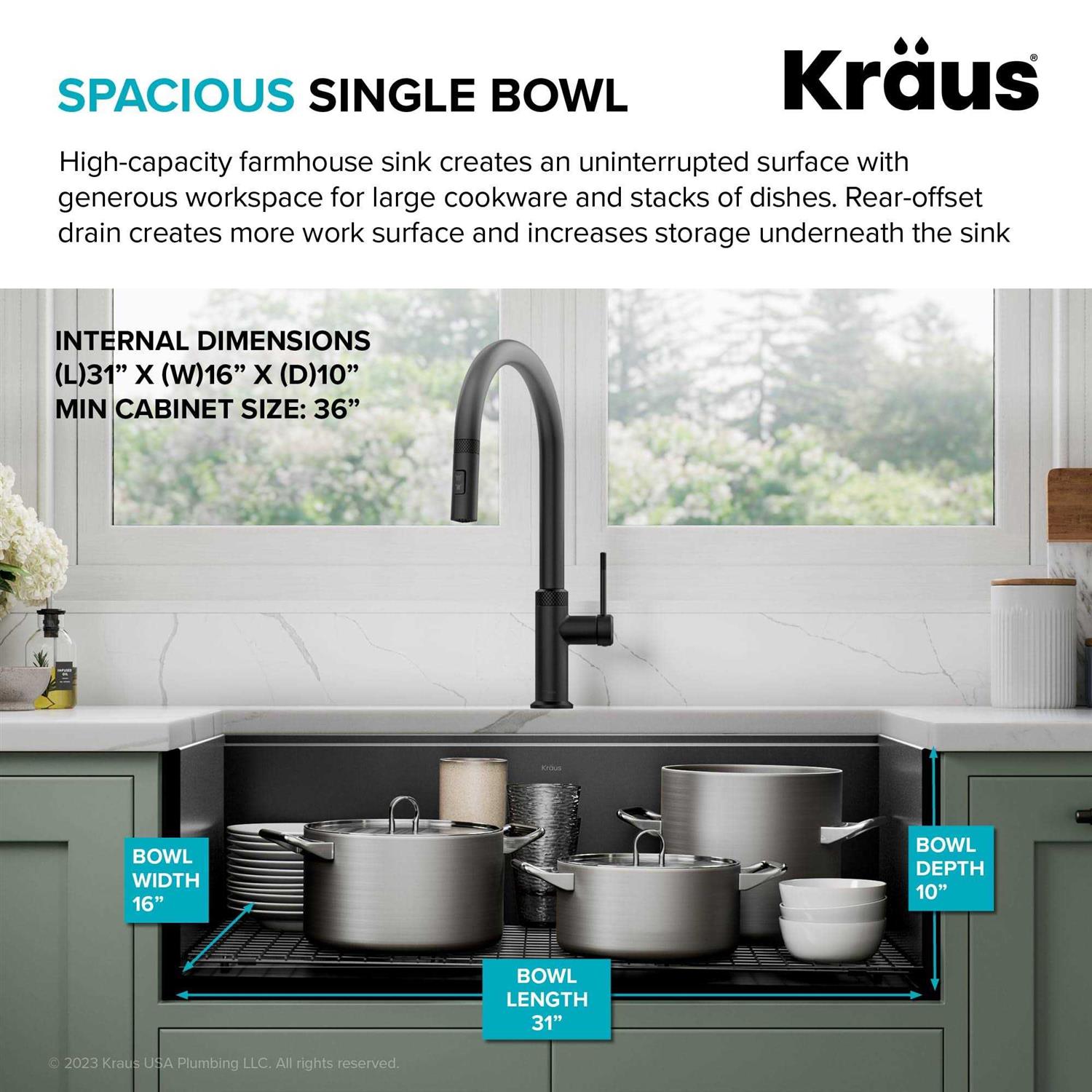 - OUTER SINK DIMENSIONS: 32 7/8” L x 20 1/4” W x 10 1/2” D – BOWL DIMENSIONS: 31” L x 16” W x 10” D – Minimum Cabinet Size: 36”