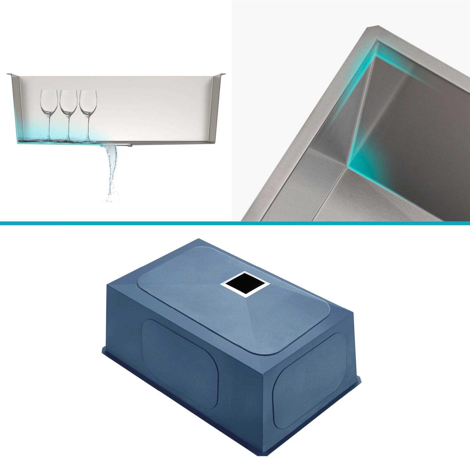 Channel grooves in the base of the sink are engineered for optimal drainage and give the sink a sleek and modern look. 12″ basin provides ample depth for tasks from laundry to pet care needs. The stainless steel construction is crafted from hand and the satin finish will easily stand up to frequent wear and tear. Finally, the sink is padded on every side with a proprietary NoiseDefend sound dampening system that will quiet even the toughest jobs. Size: W 24″ x D 18.5″ x H 12″.