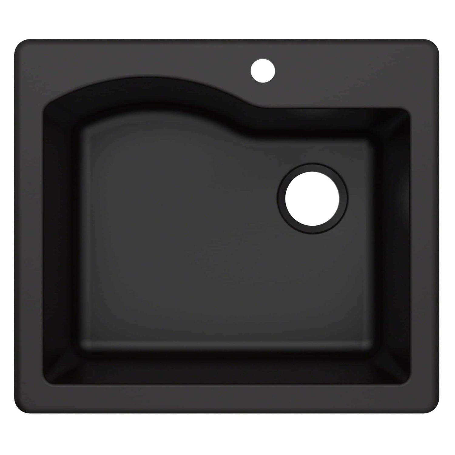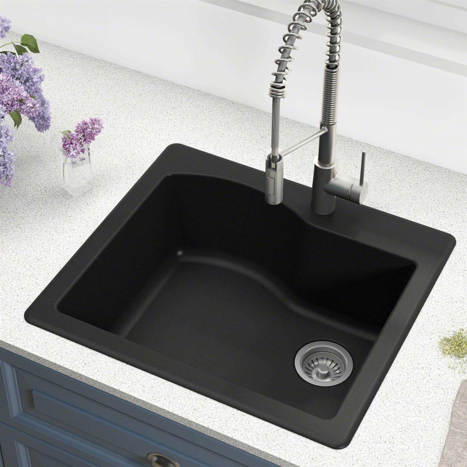 Kraus Quarza 25″ Dual Mount Single Bowl Granite Kitchen Sink – Black