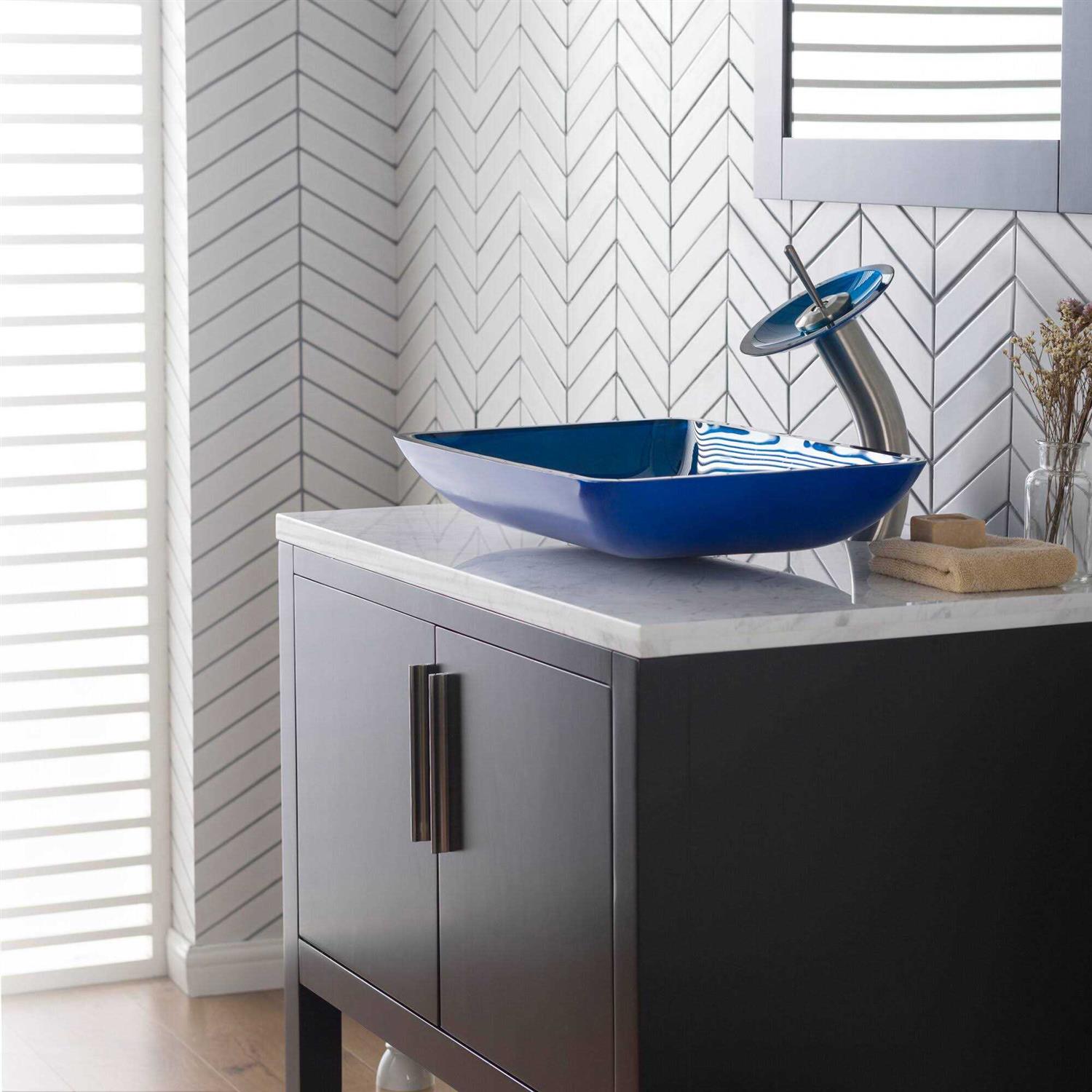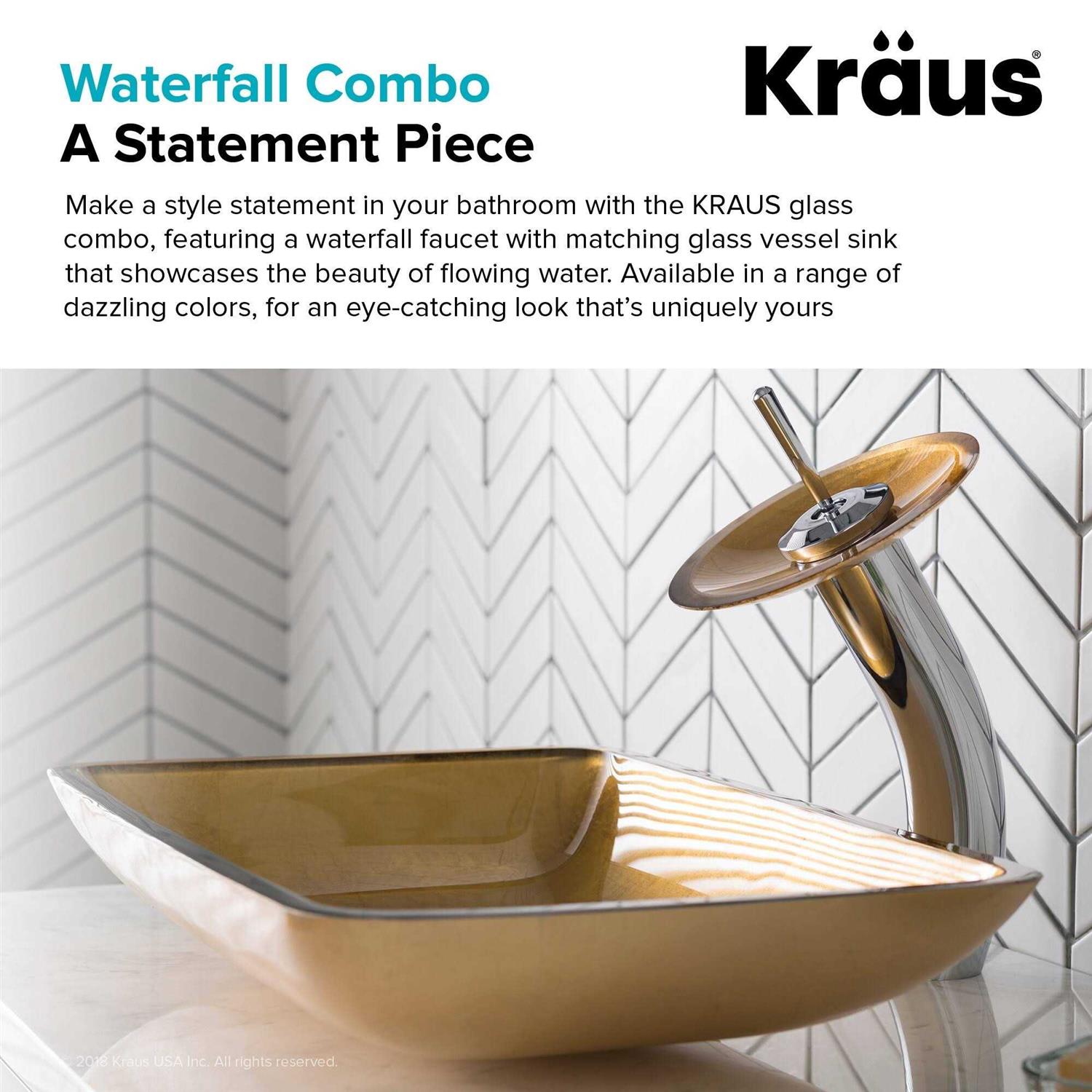 Kraus Rectangular Glass Vessel Sink with Waterfall Faucet