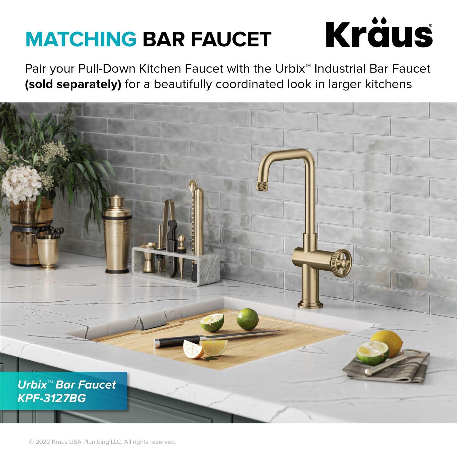 Kraus KPF-3126BG Urbix Industrial Pull-Down Single Handle Kitchen Faucet – Brushed Gold