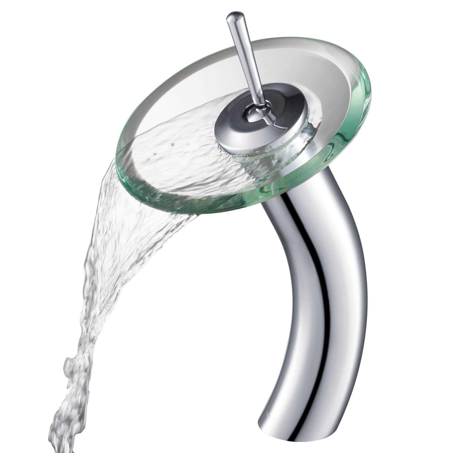 Kraus KGW-1700CH-CL Chrome Vessel Glass Waterfall Bathroom Faucet