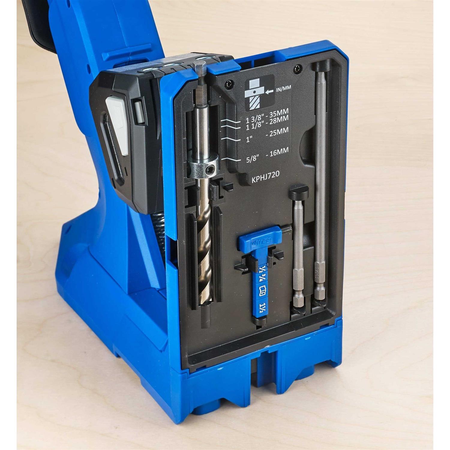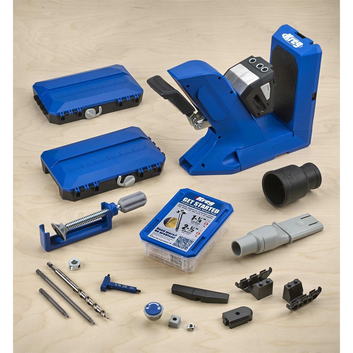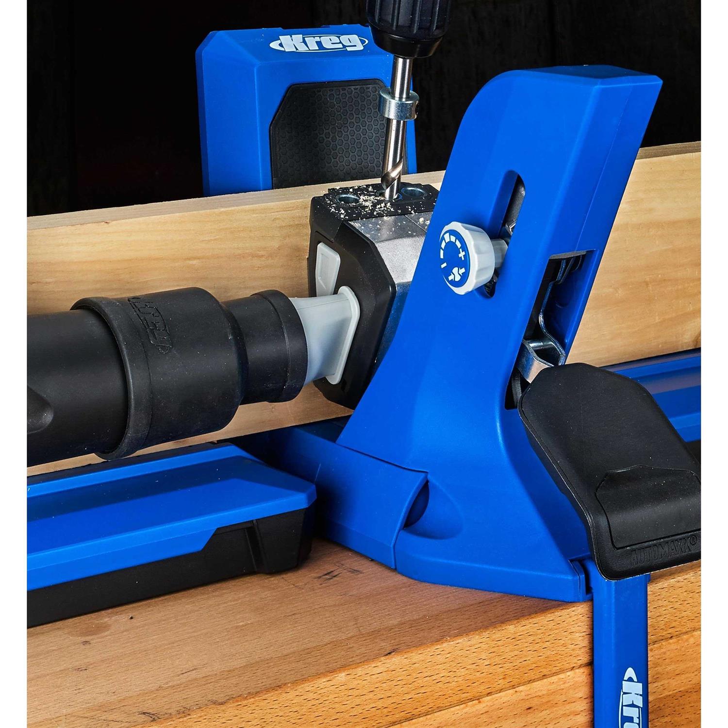 Kreg Pocket-Hole Jig 720 PRO Blue – KPHJ720PRO Build pocket-hole projects faster than ever! Multi-featured jig for creating pocket-hole joints in materials from ½” to 1-½” thick Dual-action clamping with Automaxx automatically clamps and adjusts to the proper material thickness Kreg Docking Station material support wings add more storage and enhanced support for large pieces Pocket-Hole Jig Clamp secures jig to worksurface Dust collection to keep workspace clean GripMaxx anti-slip holds material in place for worry-free clamping and to prevent shift while drilling Build pocket-hole projects faster than ever! The Pocket-Hole Jig 720PRO is the most advanced jig yet from Kreg with that features make project building incredibly efficient. One-motion clamping with Automaxx clamps your material in place, and it automatically adjusts to the exact thickness of your material. GripMaxx anti-slip holds the project piece securely so you never have to worry about shifting while you drill pocket holes. Included with the 720PRO are the Kreg Docking Station material support wings with a repeatable stop, as well as a Pocket-Hole Jig Clamp. Use the Pocket-Hole Jig Clamp to secure the jig to your workstation, while material support wings add support when drilling into large pieces. Best of all, the wings fold up and stow away easily when you’re done. These premium additions transform your jig into the ultimate pocket-hole workstation when you need more storage, more material support, and more stability. With the Pocket-Hole Jig 720PRO, you get the Kreg Docking Station material support wings with a repeatable stop, a Pocket-Hole Jig Clamp, 160 Kreg pocket-hole screws, and a free project plan so you can start building right away.