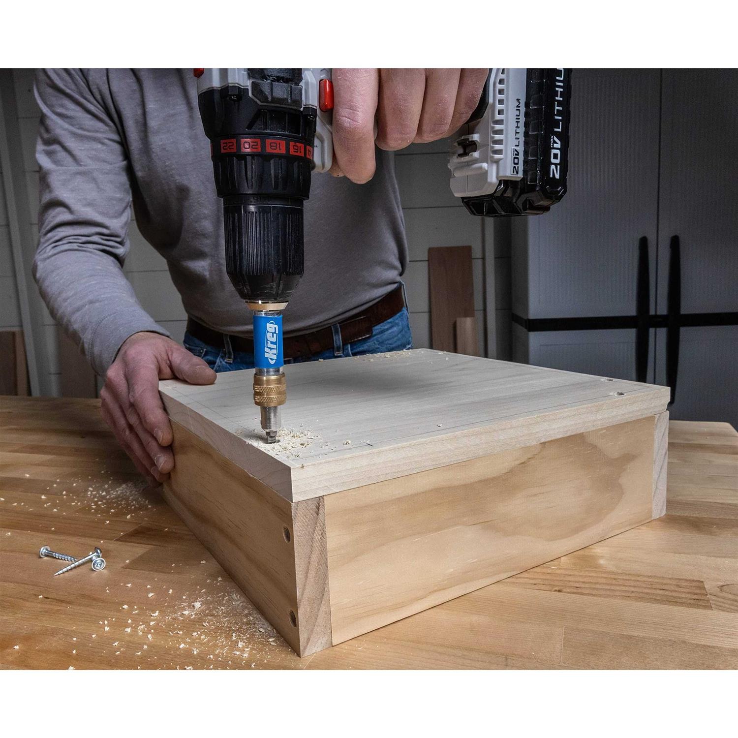 Features Two sided drill bit and driver Drills pilot hole and 3 8 counterbore Adjustable pilot hole drilling depth 1 4 Hex shank Compatibility Kreg #2 square drive screws The Kreg Quick Flip makes it possible to use Kreg Screws for a variety of strong, simple joints all with one single tool. Drill a pilot hole and counterbore with one side, then drive a Kreg Screw with the #2 square drive bit on the other side. With this dual action tool, you can quickly make joints using Kreg Screws in many different applications. Kreg Screws are perfect for pocket hole joints, but their strength and high quality engineering make them ideal for other uses, too. Use the Quick Flip with Kreg Screws to quickly face join corners, attach false fronts to drawers, and much more. The Quick Flip features a double ended insert in a quick release housing. On one end, a drill bit is sized to drill a perfect pilot hole for a Kreg Screw, plus a cutter that drills a flat bottomed counterbore that the screw head fits into. Then flip the insert around to expose the other end a #2 square drive bit specially designed for use with Kreg Screws.