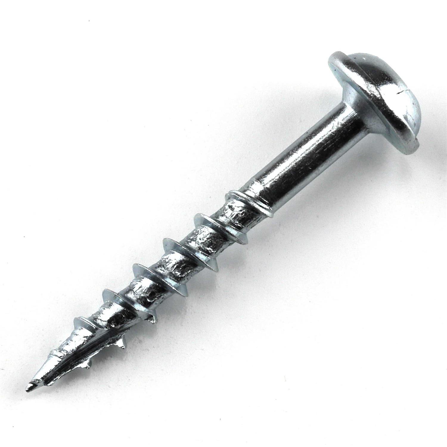 - Premium Zinc Pocket-Hole Screw: 1 1/4 inch coarse thread screws have Maxi-Loc heads for softer materials