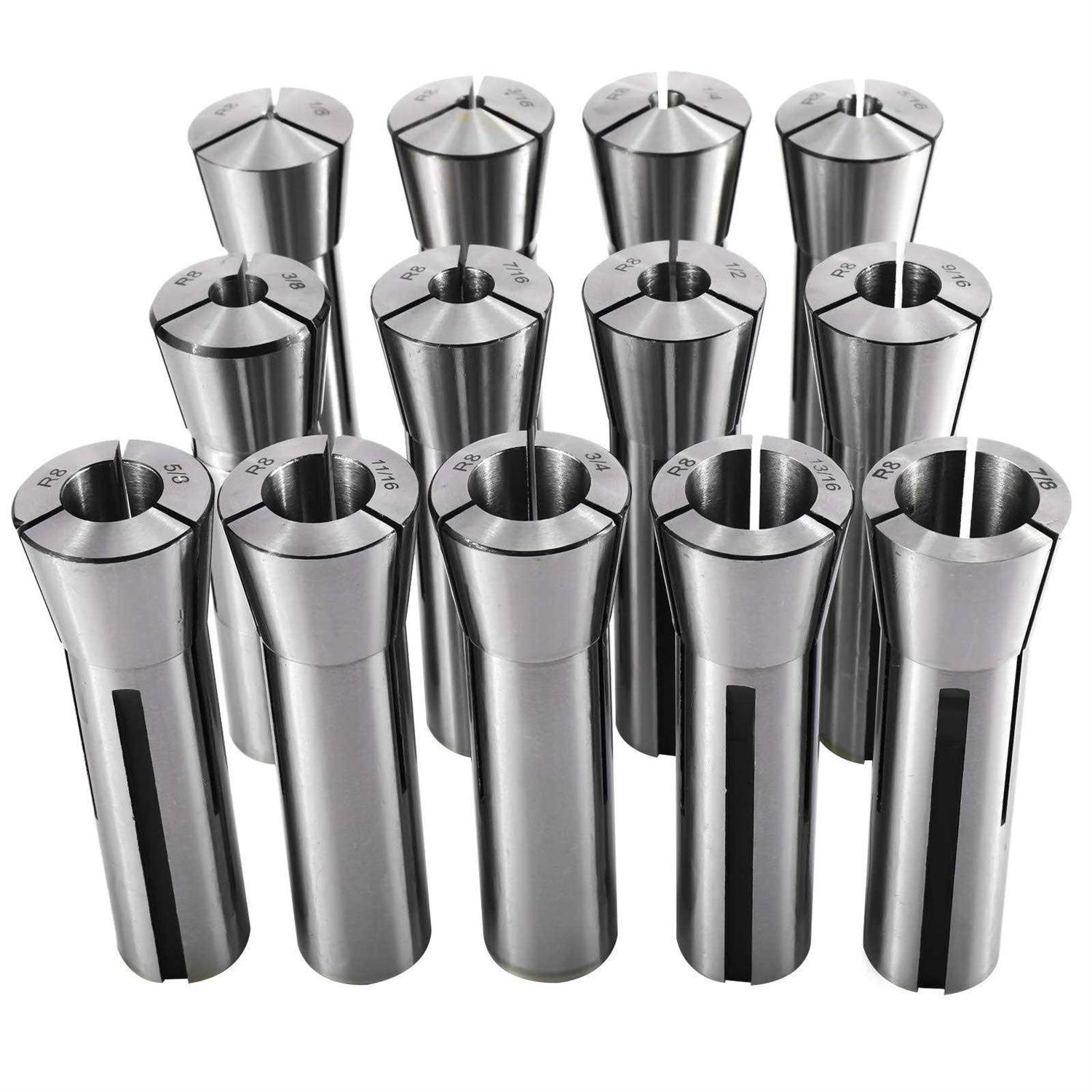 KUNTEC 13 Piece Precision R8 Collet Set Mill Collets Set Taper Spindle R8 Collets for Mill Machine 1/8inch – 7/8inch