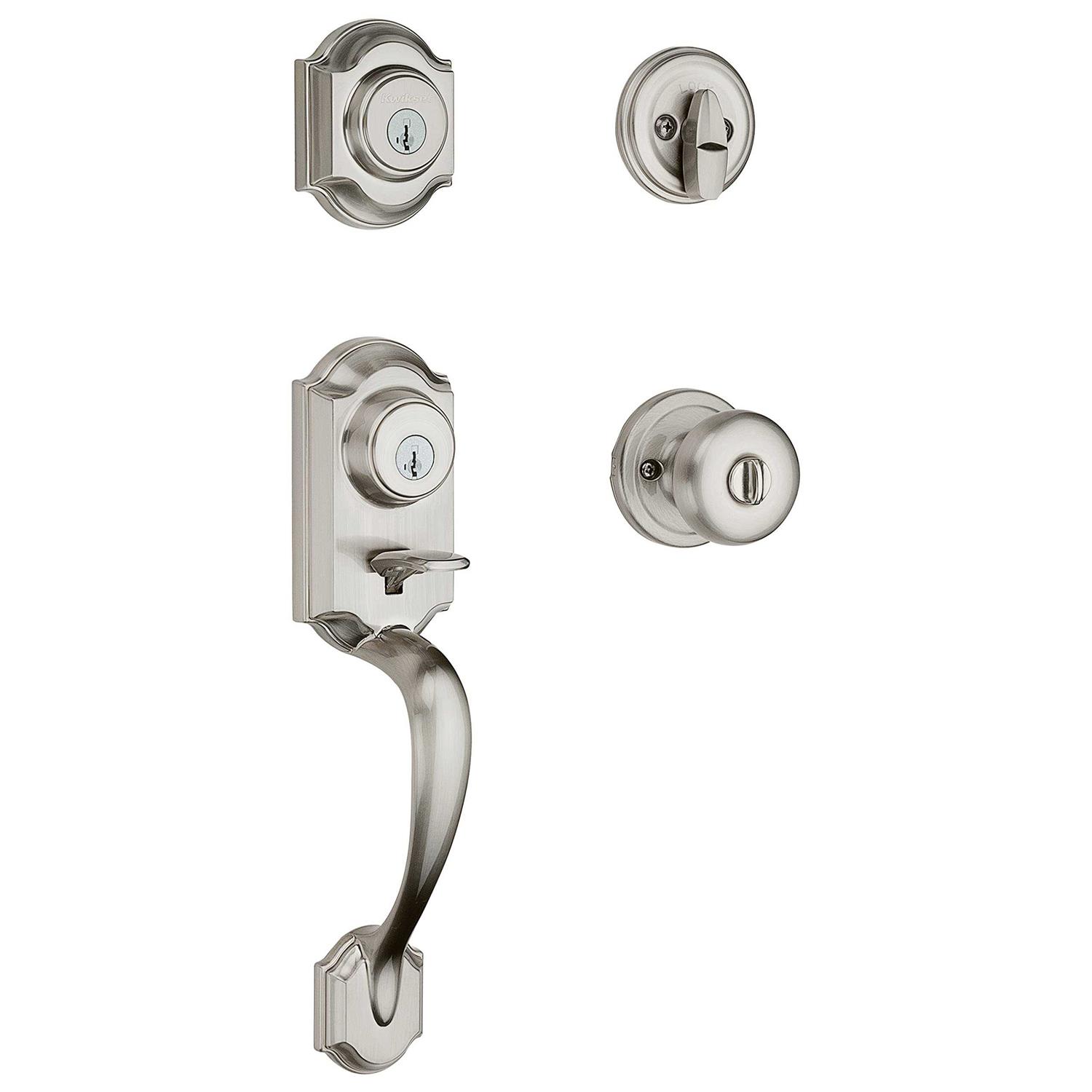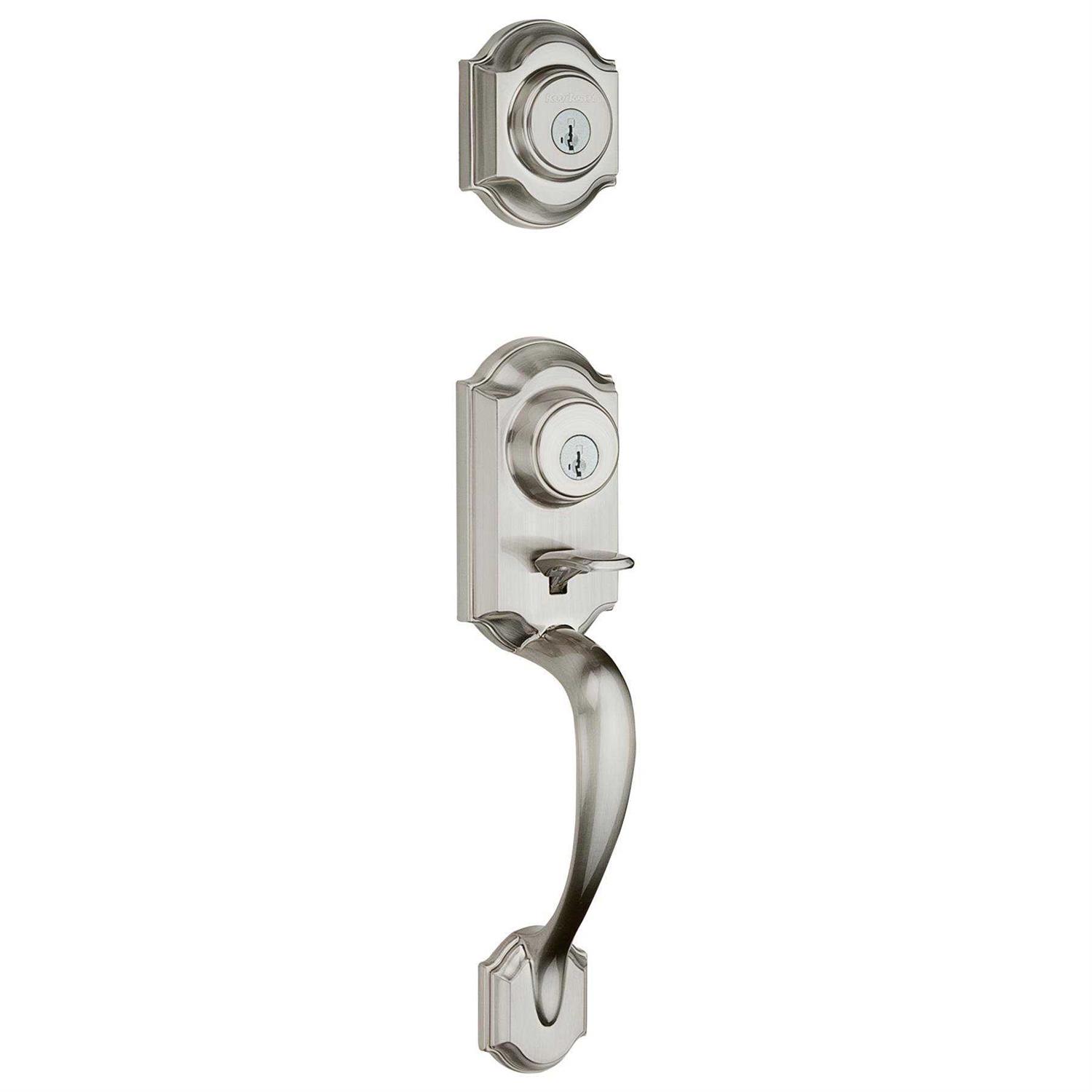 Step up to designer styles and superior security with Kwikset Signature Series products. Enjoy increased security and easy fit with the Montara handleset. 2 points of locking, on the deadbolt and the handleset, provide double the security. And the adjustable through bolt at the bottom of the handleset allows for easy installation and provides you peace of mind knowing that it will adjust to fit the bottom hole in your door. With the arched design, the Montara handleset will add both security and style to your front door. Handleset can be locked or unlocked by a key from the outside or with a key/turnpiece from the inside. The crisp, clean appearance of the satin nickel finish adds to the overall look of the product and brings a modern feel.