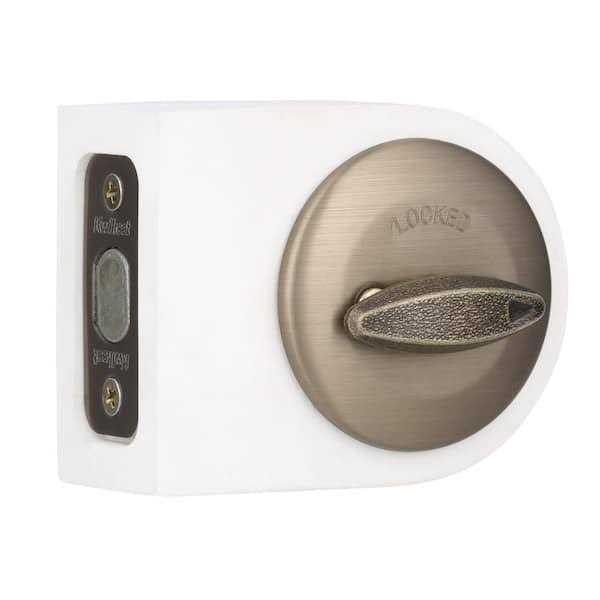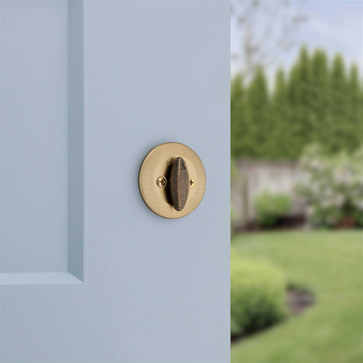 Single-sided deadbolt can be used along with a keyed knob or lever for added security, bolt is locked and unlocked by turn piece on inside of door. Round corner faceplate and adjustable backset. Easily installs in minutes with just a screwdriver.