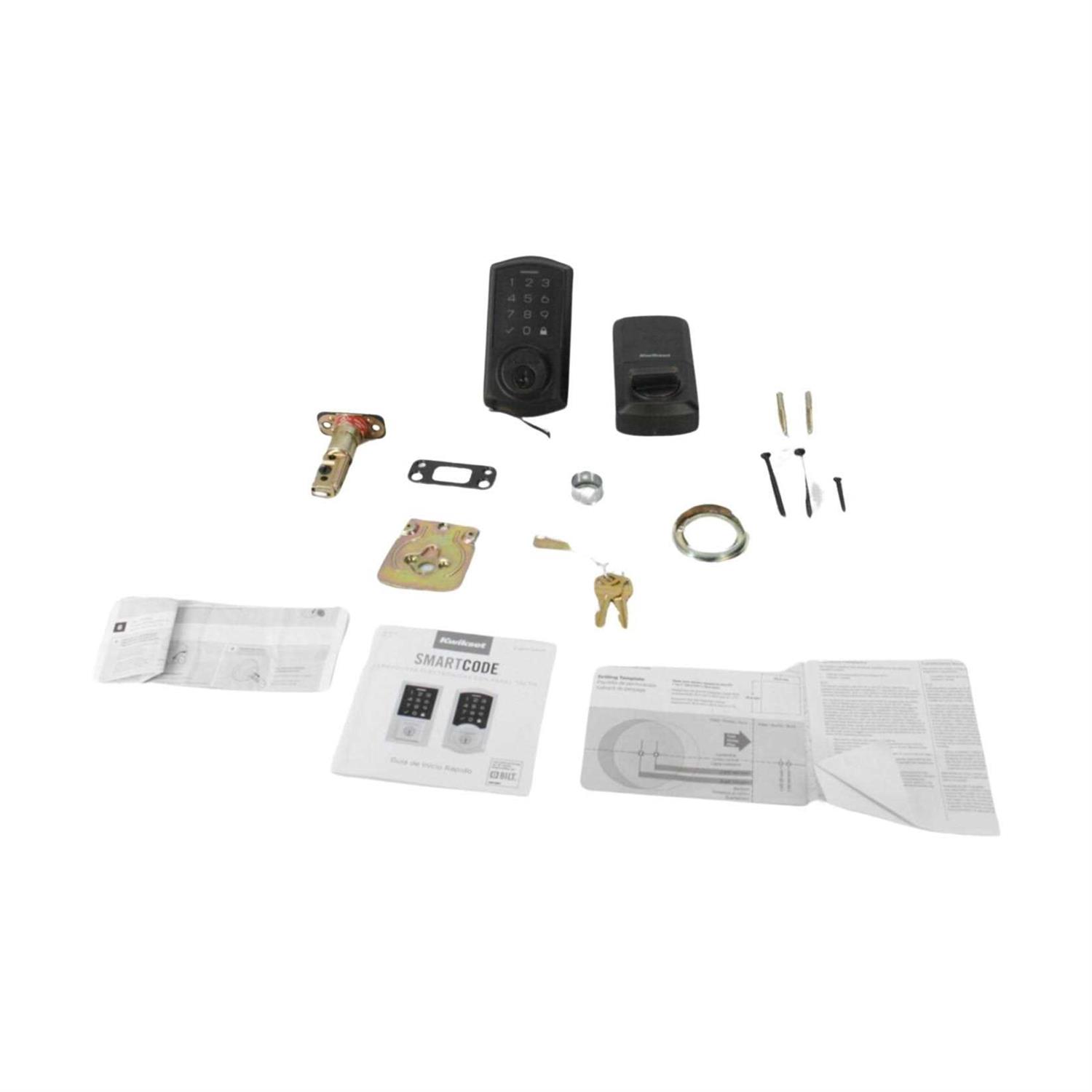 Deadbolts by Kwikset. Details:The SmartCode touchscreen electronic deadbolt is a one-touch locking motorized deadbolt. With your personalized code, you can enter your home with the convenience of keyless entry and the back-lit keypad provides increased visibility. It features patented SecureScreenTM technology to prevent code detection from fingerprints on the touchscreen. SmartCode is easy to install, program and use, and operates on 4 AA batteries. It also features SmartKey Security as the back-up keyway. This single cylinder deadbolt can be locked or unlocked by using the keypad or key from the outside as well as the turn button from the inside. The Venetian Bronze finish is hand-rubbed to reveal unique bronze highlights and provides a rich and warm complement to the product’s style.