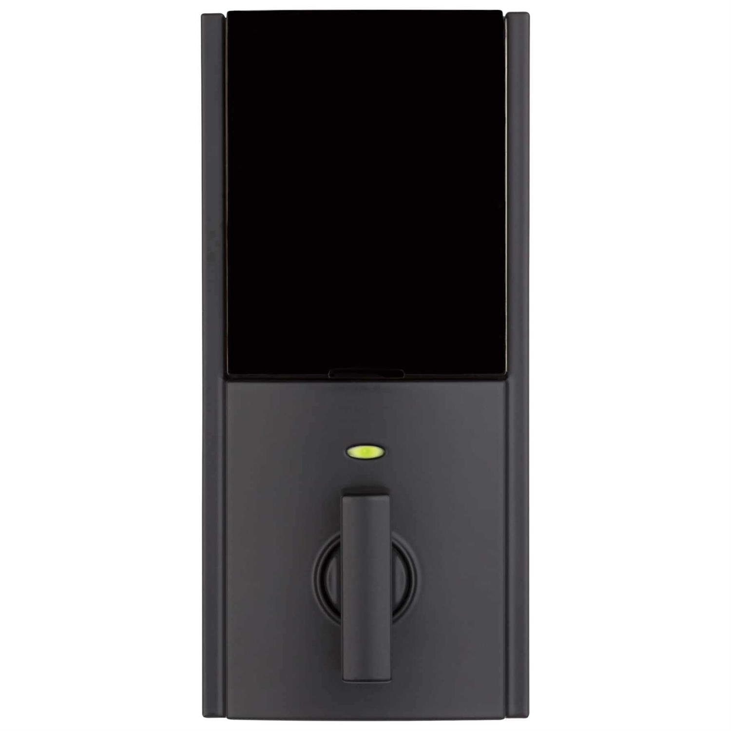 The SmartCode touchpad smart lock with Home Connect technology enables the lock to wirelessly communicate with other devices in home. The lock allows the user (through a web enabled device) to remotely check the door lock status, lock or unlock the door and receive notifications. SmartCode is a 1-touch locking motorized deadbolt. with your personalized code, you can enter your home with the convenience of keyless entry and the back-lit keypad provides increased visibility. SmartCode is easy to install, program and use and operates on 4 AA batteries. It also features SmartKey Security as the back-up keyway. This single cylinder deadbolt can be locked or unlocked by using the keypad or key from the outside as well as the turn button from the inside. The rich tones of Matte Black add the finishing touch to this product. The Matte Black finish provides a rich and warm complement to the product’s style.