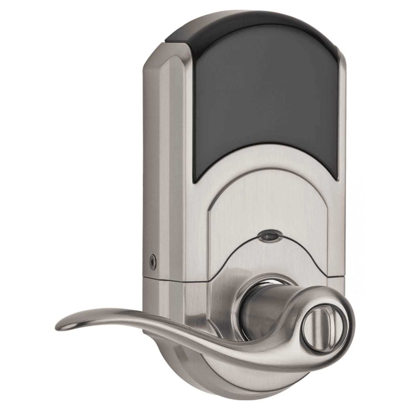 The SmartCode touchpad smart lock lever with Home Connect technology enables the lock to wirelessly communicate with other devices in home. The lock allows the user (through a web enabled device) to remotely check the door lock status, lock or unlock the door and receive notifications. SmartCode is a one-touch locking motorized deadbolt. With your personalized code, you can enter your home with the convenience of keyless entry and the back-lit keypad provides increased visibility. SmartCode is easy to install, program and use, and operates on 4 AA batteries. It also features SmartKey Security as the back-up keyway. This entry lever can be locked or unlocked by using the keypad or key from the outside as well as the turn button from the inside. The crisp, clean appearance of the Satin Nickel finish adds to the overall look of the product and brings a modern feel.