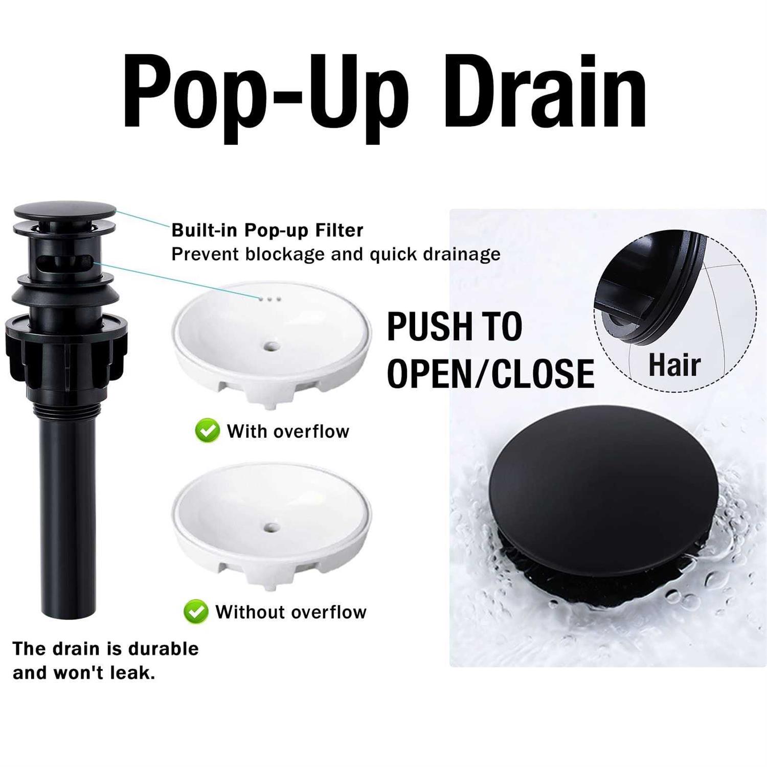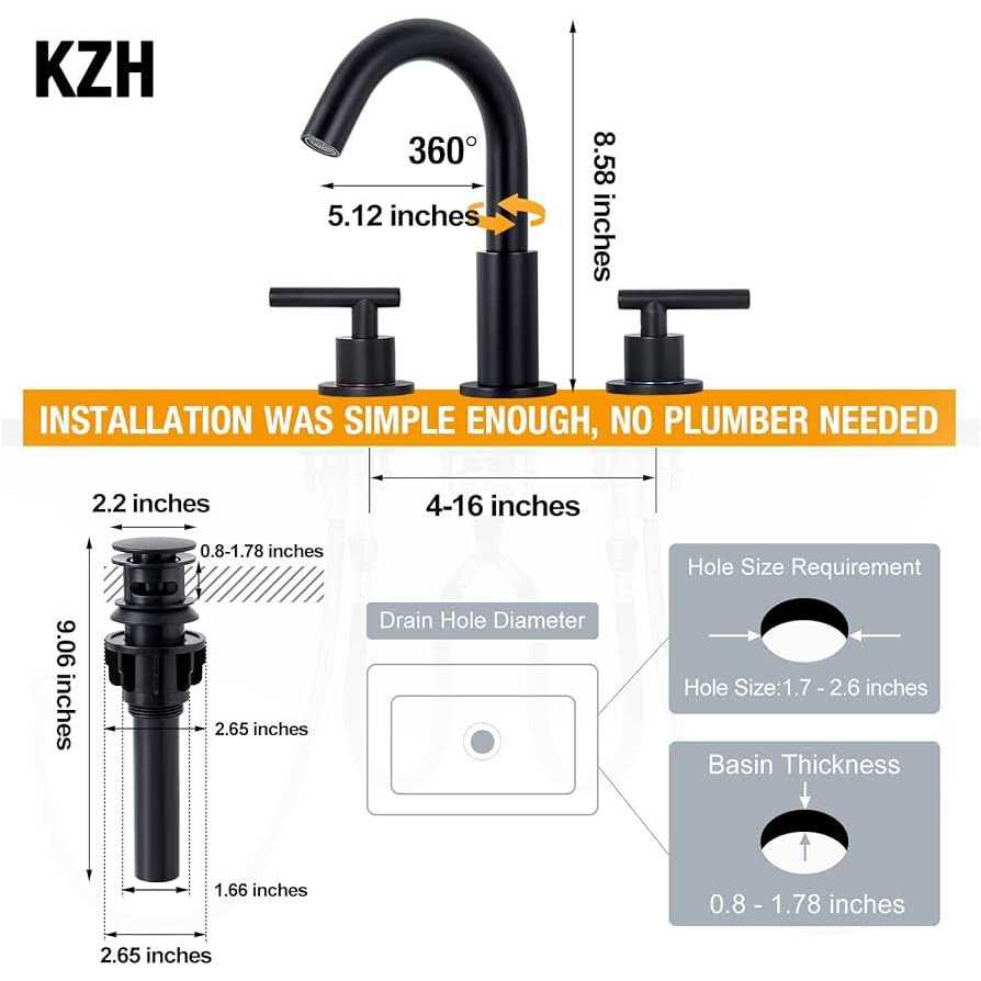 Easy Installation: 3-hole mount, compatible with widespread installations at any distance between 4 and 16 inches. Quick connect hose design can help you install by yourself with 20 minutes, no need to pay for plumbers. And the box had everything you needed to install. ( including pop up drain and supply hoses ) Metal Construction: The bathroom faucet make of solid metal is healthier and stronger. Durable: Multiple layer protection matte black finish will not fade or tarnish over time. Match various decoration styles, whether it is modern or vintage style bathroom. Precise Water Adjustment: The 2 handle lavatory vanity sink faucet allows to separately adjust hot and cold water temperature, water flow is strong and focus, the aerator creates soft bubble stream.”