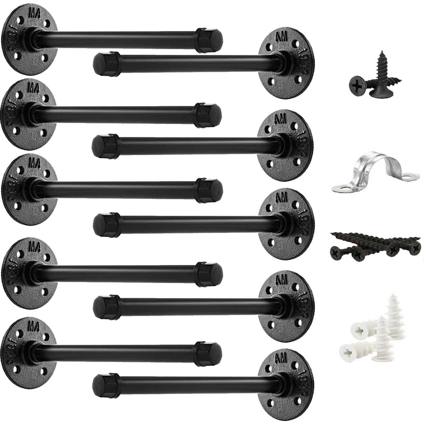 ***LASIDO Pipe Shelf Bracket*** Are you looking to enhance your man cave, living room or lair with that industrial rugged look? Your Perfect Industrial Pipe Shelf… Industrial Quality: Made with quality iron your shelf bracket units look and feel like the industrial piping they are and maintain their quality for ages. Manufactured Character: Your pipe shelf bracket will create a bold industrial look in any room you want to decorate… FULL SET INCLUDES : (6) 1/2 inch flange (6) 1/2 inch X 10” pipe connector (6) 1/2 inch cap (18) screw (18) Wall plug (6) Pipe Strap (12) Screw for Pipe Strap Black Color Shelf not Included (Recommend the width of shelf: equal or less than 9.2 inch) So, What’re You Waiting for? Show off your tough side today with your industrial shelving, mount a hard wood board on top with your best possessions and click “Add To Cart” now. ***LASIDO Pipe Shelf Bracket*** Are you looking to enhance your man cave, living room or lair with that industrial rugged look? Your Perfect Industrial Pipe Shelf… Industrial Quality: Made with quality iron your shelf bracket units look and feel like the industrial piping they are and maintain their quality for ages. Manufactured Character: Your pipe shelf bracket will creat