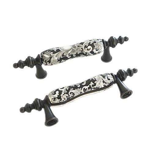 LBFEEL Ceramic Drawer Pulls Handle Black White Dresser Knob for Kitchen Cabinet Knob 4Pack 3.0″ Centers Door Furniture Hardware 76mm (3″ Hole