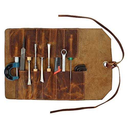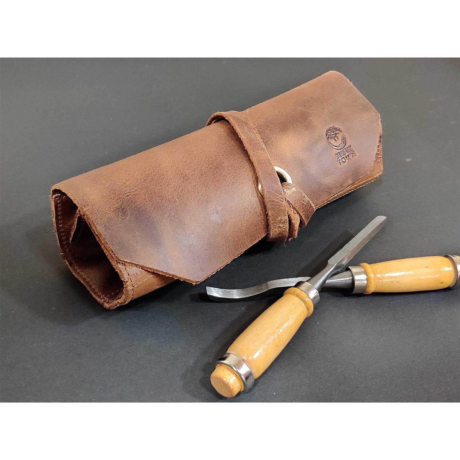 Leather Tool Roll Up Pouch – Leather Tool Wrench Roll / Chisel Bag by Rustic Town