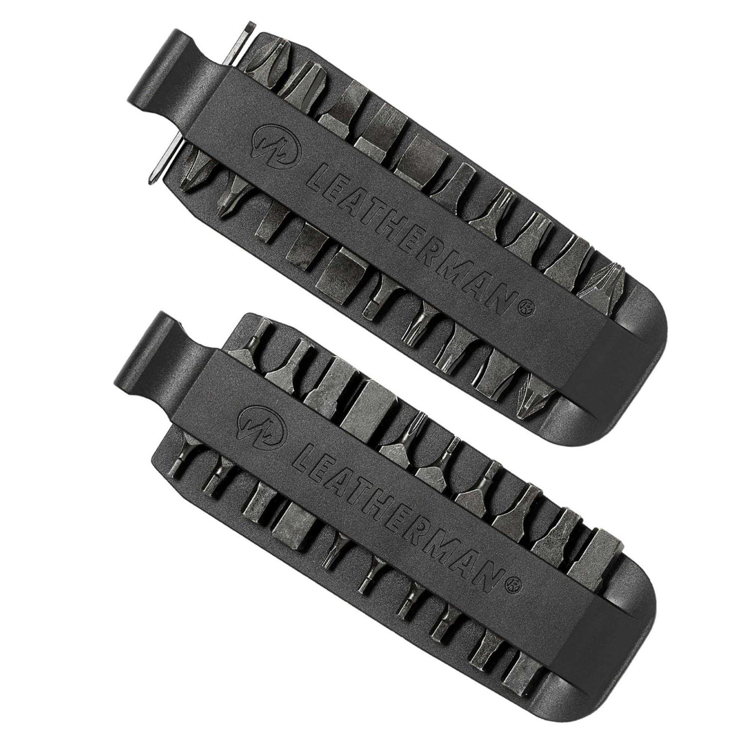 This must-have kit gives you the versatility you need to attack a wide array of everyday tasks. The 21 double-ended steel bits come in a range of sizes and shapes and each of the bits is designed to work with Leatherman multitools and knives using the Leatherman bit driver. The durable and convenient holders clip easily onto a belt for hassle-free transportation and long-lasting protection from wear and tear. The kit features classic Leatherman engineering, which means all bits are built with the highest standards in mind; in fact, forged from solid steel and coated with zinc, they are 35 percent stronger than average stainless steel bits.The assortment of bits include: Eyeglass Bit (Philips/Flathead), Philips 2- Philips 1, Philips 0- Philips 3, Flathead 1/8- Flathead 3/32, Flathead 3/16 inch- Flathead 5/32, Flathead 1/4 inch- Flathead 7/32, R2- R1, Torx 10- Torx 15, Torx 20- Torx 25, Torx 27- Torx 30, Pozi 1- Pozi 2, 1.5mm Allen- 2mm Allen, 2.5mm Allen- 3mm Allen, 4mm Allen- 5mm Allen, 1/4 inch Allen- 6mm Allen, Torx 6- Torx 8, 1/16 inch Allen- .050 Allen, 3/32 Allen- 5/64 Allen, 1/8 Allen- 7/64 Allen, 5/32 Allen- 9/64 Allen, 7/32 Allen- 3/16 Allen. Multi-tool Bit set expands the capacity of your 21-bit double-sided holder- 42 tools in total Made in the USA