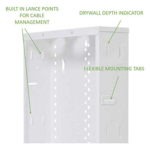 Perfect for all installations, these new enclosures come with a hinged, locking door and feature universal On-Q style mounting holes that are compatible with all bay-style modules. This 20 enclosure is the perfect solution for a basic structured wiring system. It features larger top openings that make pulling wire easier as well as additional knockouts, more side lances, and side tabs for more flexible mounting.