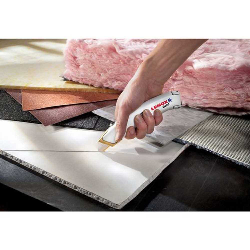 - Cuts the toughest materials, including drywall, insulation, flooring, roofing, and more.
