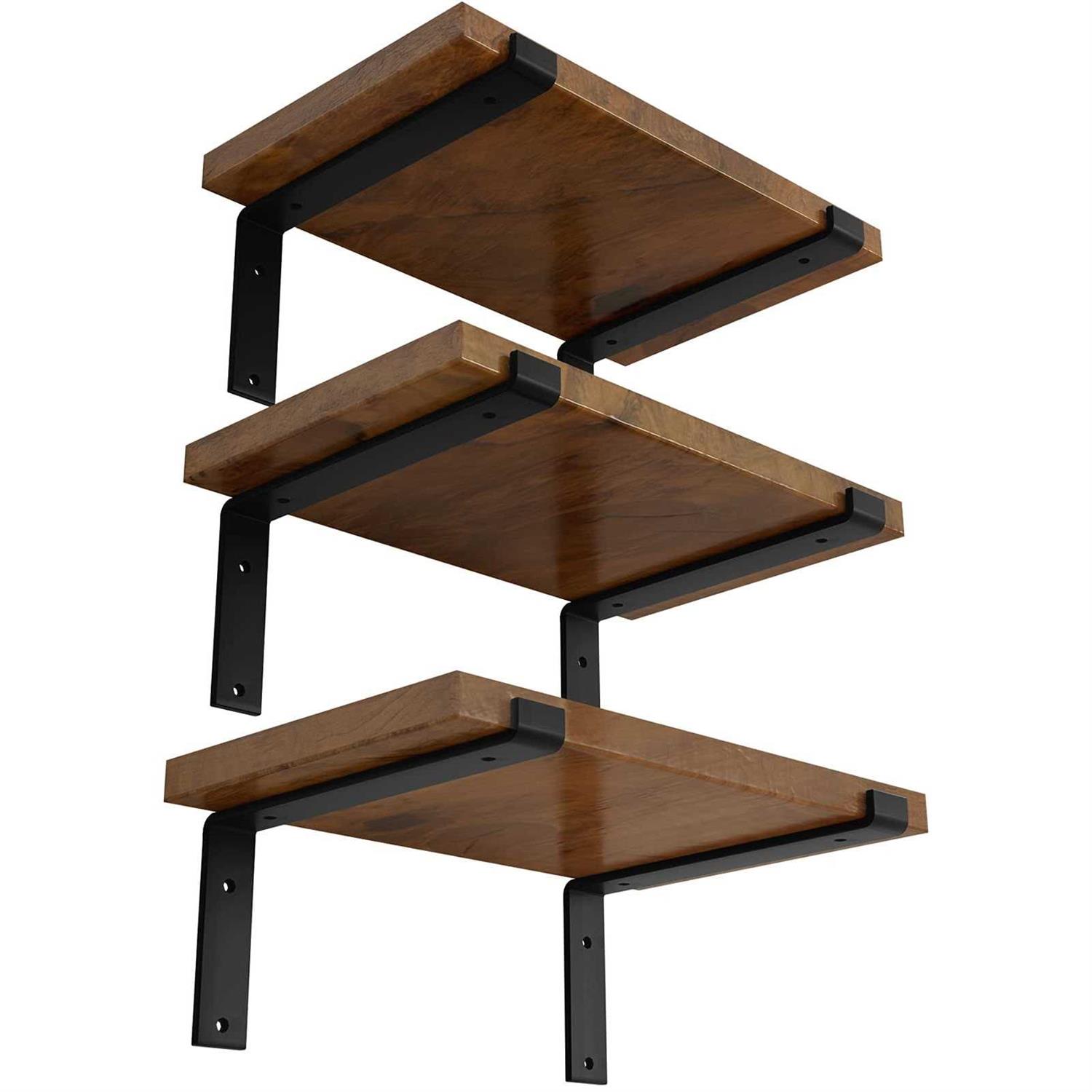 HIGH QUALITY: Unlike the normal painting material, power frosted black coating ensure its rust-resistance and anti-coating off. HEAVY DUTY: Each 5mm thick heavy duty steel shelf bracket with upgrade quality screws carry up to 80lb, enough for daily use. ALL-MATCH STYLE: Maximize space with with style. Ideal for the kitchen, bathroom, bedroom, office & more. HIGH QUALITY: Unlike the normal painting material, power frosted black coating ensure its rust-resistance and anti-coating off. HEAVY DUTY: Each 5mm thick heavy duty steel shelf bracket with upgrade quality screws carry up to 100lb, enough for daily use. ALL-MATCH STYLE: Maximize space with with style. Ideal for the kitchen, bathroom, bedroom, office & more.”