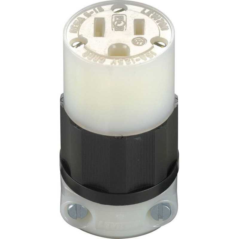 Leviton Black & White 2-Pole Grounding polarized straight blade connector in black/white color is made of impact-modified nylon with a thermoplastic back cover for durability. It has wire module, cord-clamp, clamp insert made of nylon that provides positive crimp lock without cutting wire strand. Connector has three-wire circuitry. Connector has voltage rating of 125 Volts, current rating of 15 Amps and can withstand 2000 Volts dielectric voltage. It withstands temperature of -40 to 60 deg C.Connector has a triple-wipe, heavy-duty contact set that is fixed into deep pockets to avoid damages. Wiring module is attached to body that provides strong fit and is easy to assemble. It measures 1.49 Inch bottom diameter x 1.39 Inch top diameter x 2.76 Inch. It has blades/contacts and terminal screws made of solid brass for superior conductivity. It has assembly screws made of zinc-plated steel that offers rust free surface. It has NEMA rating of 5-15R. It has UL94 flammability rated to withstand hazardous environmental conditions.