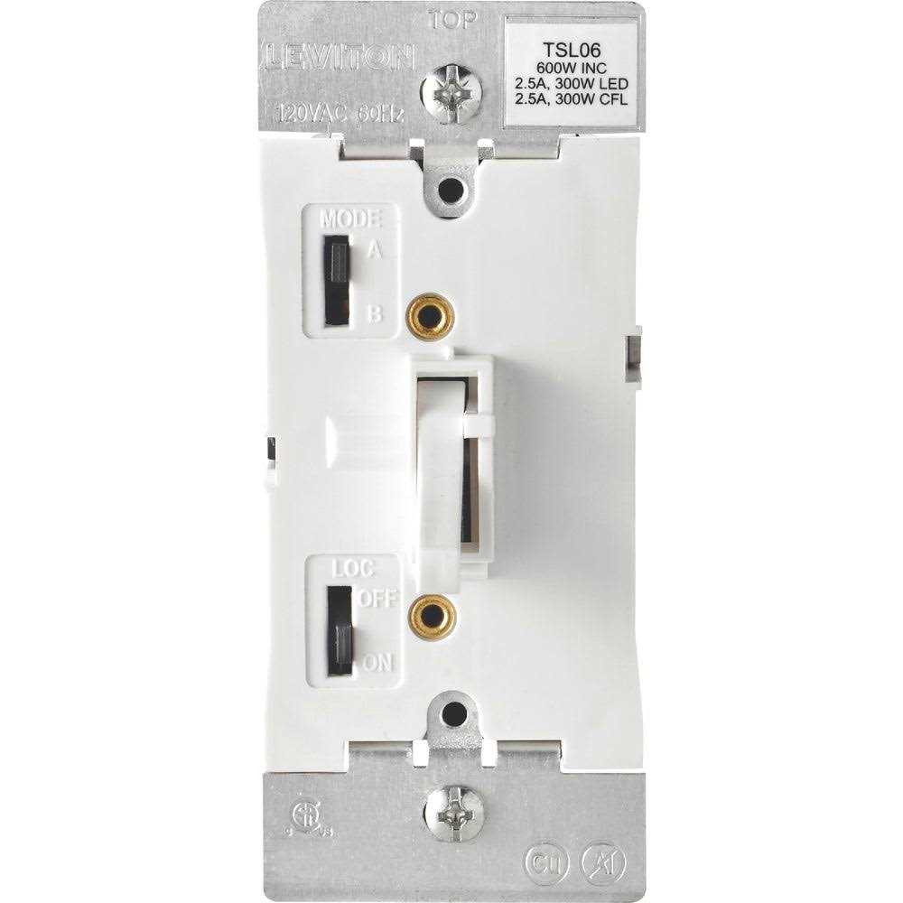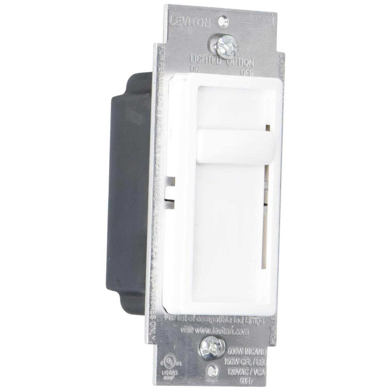 With its slide-to-off functionality, the Leviton 6672-1LW decora sure slide dimmer offers smooth full-range dimming for incandescent and dimmable LED and CFL lamps. This universal dimmer will save on electricity costs while also providing a modernistic style to interior spaces.