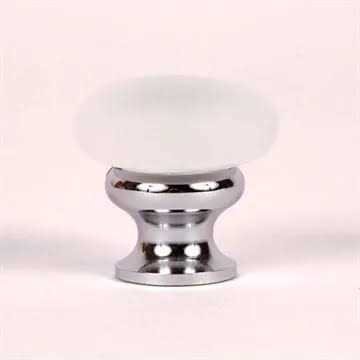 Dramatic richness of color infuses the glass that shapes this lovely mushroom glass knob with a metal base created by designer Lewis Dolin. Easy to install with two 8-32 machine screws included. Designed to complement the glass bin pulls. Extremely durable. Glass is hand poured. Die-cast zinc construction. Slight variations in color may occur due to the nature of glass.