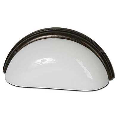 Easy to install with four 8-32 machine screws included. Can be used in tradition or modern setting. Slight variations in color may occur due to the nature of glass. Glass is hand poured. Transforms the classic cup-like bin pull. Die-cast zinc construction. Backplates not included. Milk white glass finish.